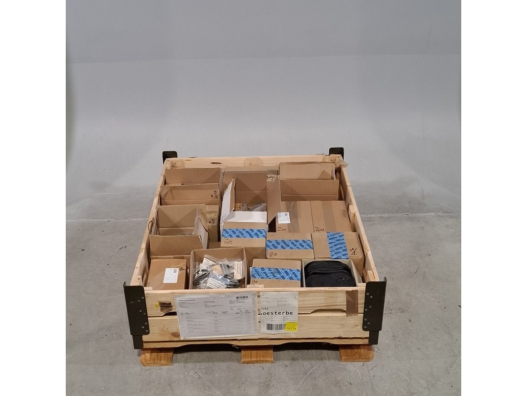 Product: Diverse onderdelen Specificaties: Bestaande uit o.a. slangklemmen, bouten, draad stop, schroeven, DAF onderleg plaat rubber, etc Exclusief palletkist.
