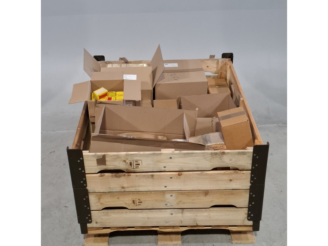 Product: Diverse onderdelen Specificaties: Bestaande uit o.a. schakelaar, zekeringen, knie buis, etc Exclusief palletkist.