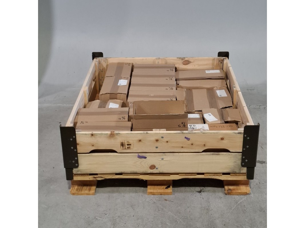 Product: Diverse onderdelen Specificaties: Bestaande uit o.a. schakelaar, triple lock vloeistof connector, slangen klem, etc Exclusief palletkist.