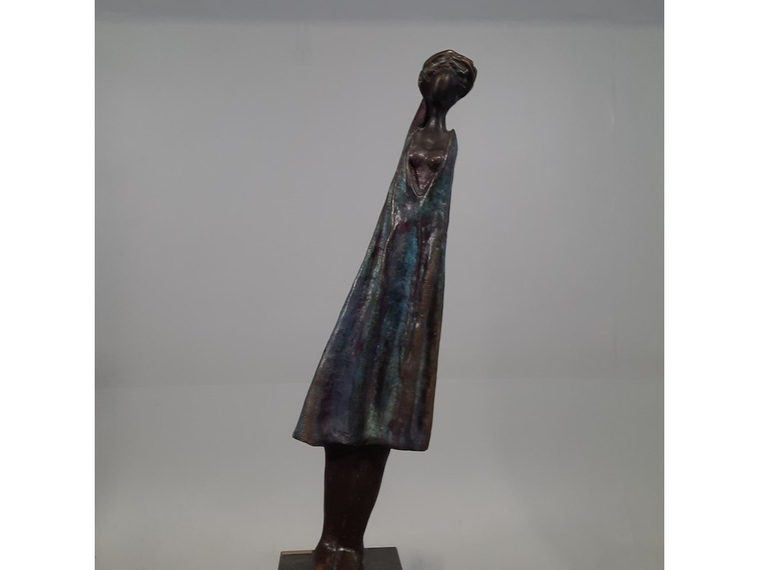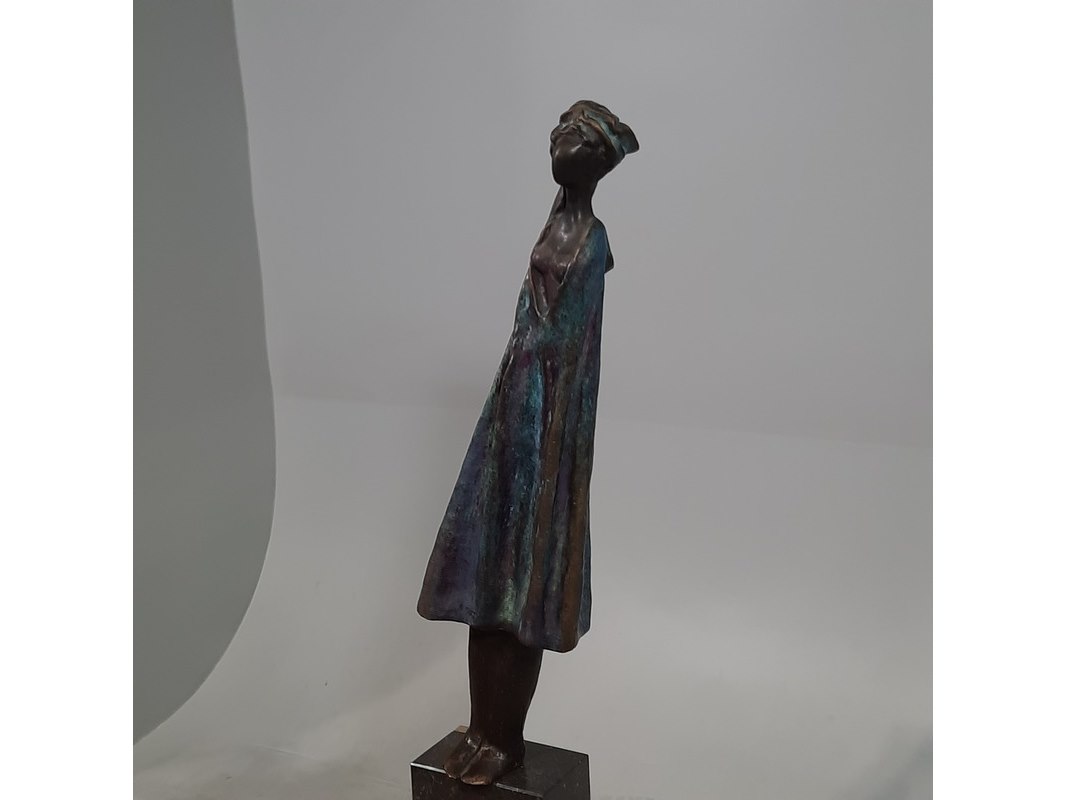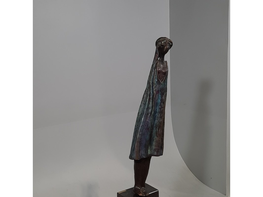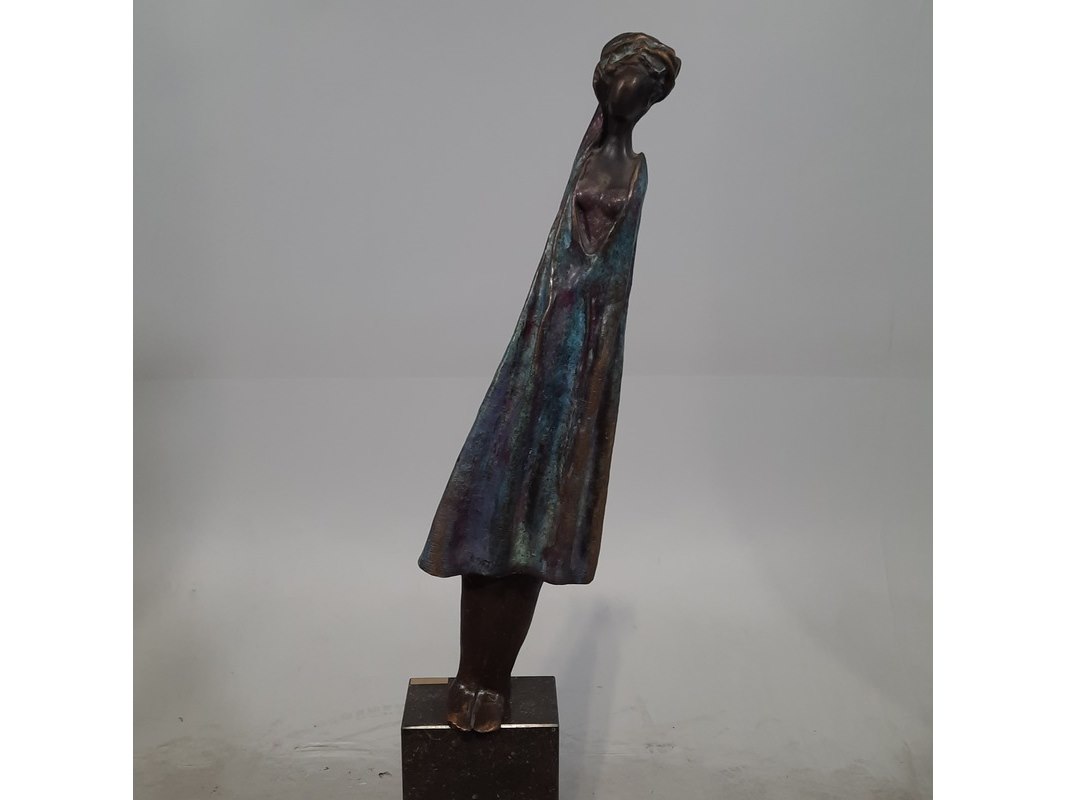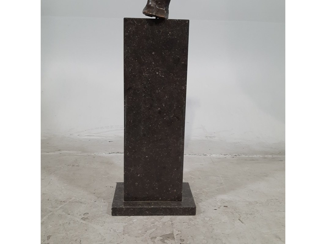 Merk: N. Knoop Product: Bronzen beeld op stenen sokkel Afmeting: hxbxd ca. 148x28x20 cm BouwJaar: 2008