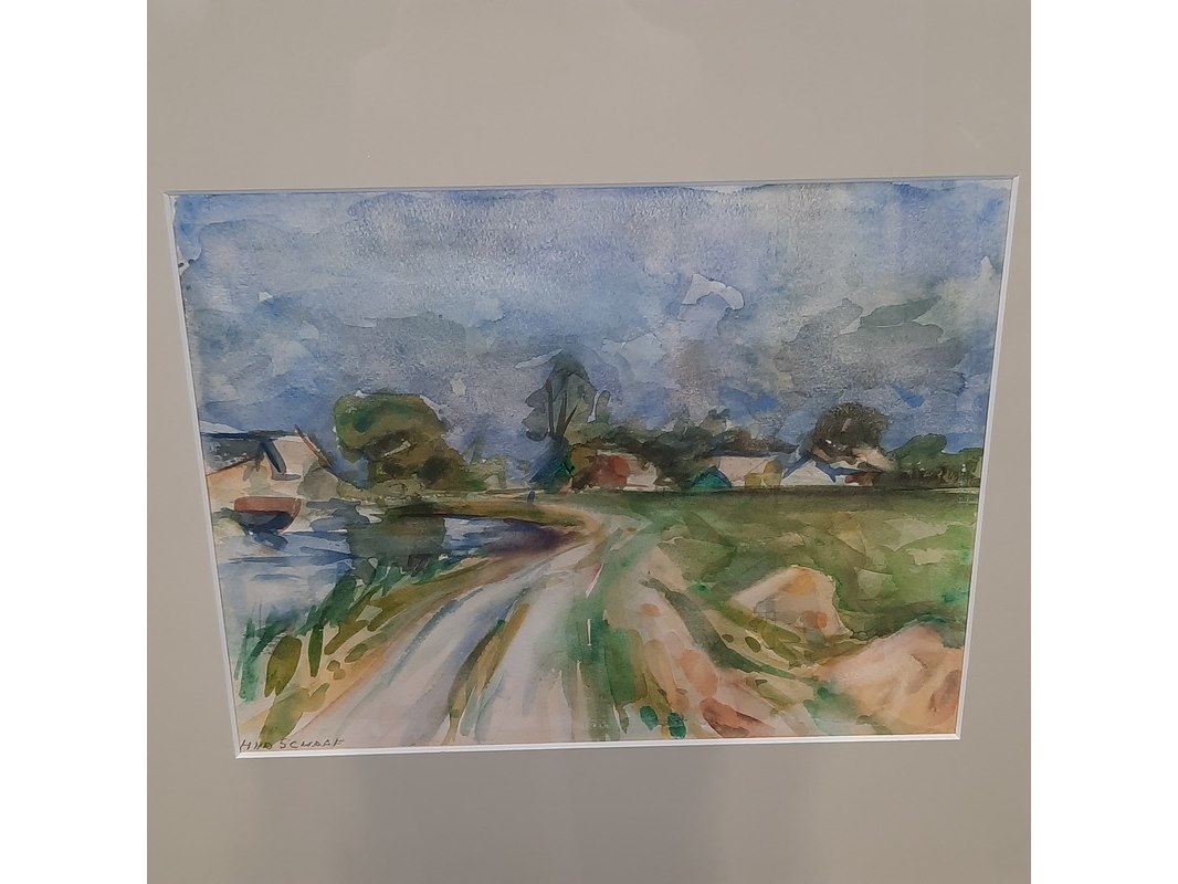 Aquarel, h. van der schaaf, polderdijk