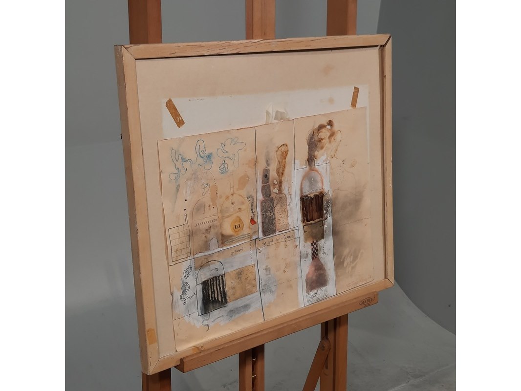 Merk: Theo Kley Product: Kunstwerk Afmeting: hxb ca. 53x63 cm BouwJaar: 1966 Conditie: Matig Specificaties: Afbeelding en lijst liggen los. Glas lijst ontbreekt.