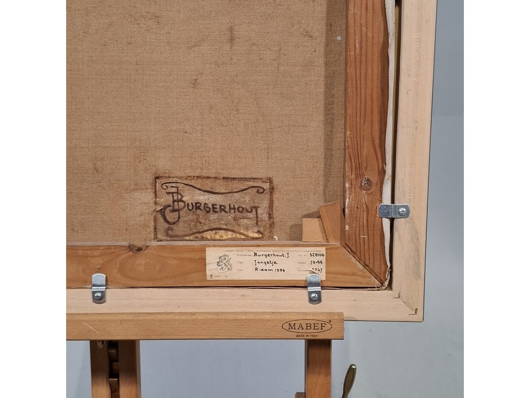Merk: J. Burgerhout Product: Schilderij Afmeting: hxb ca. 87x63 cm BouwJaar: 1956 Specificaties: Diverse beschadigingen