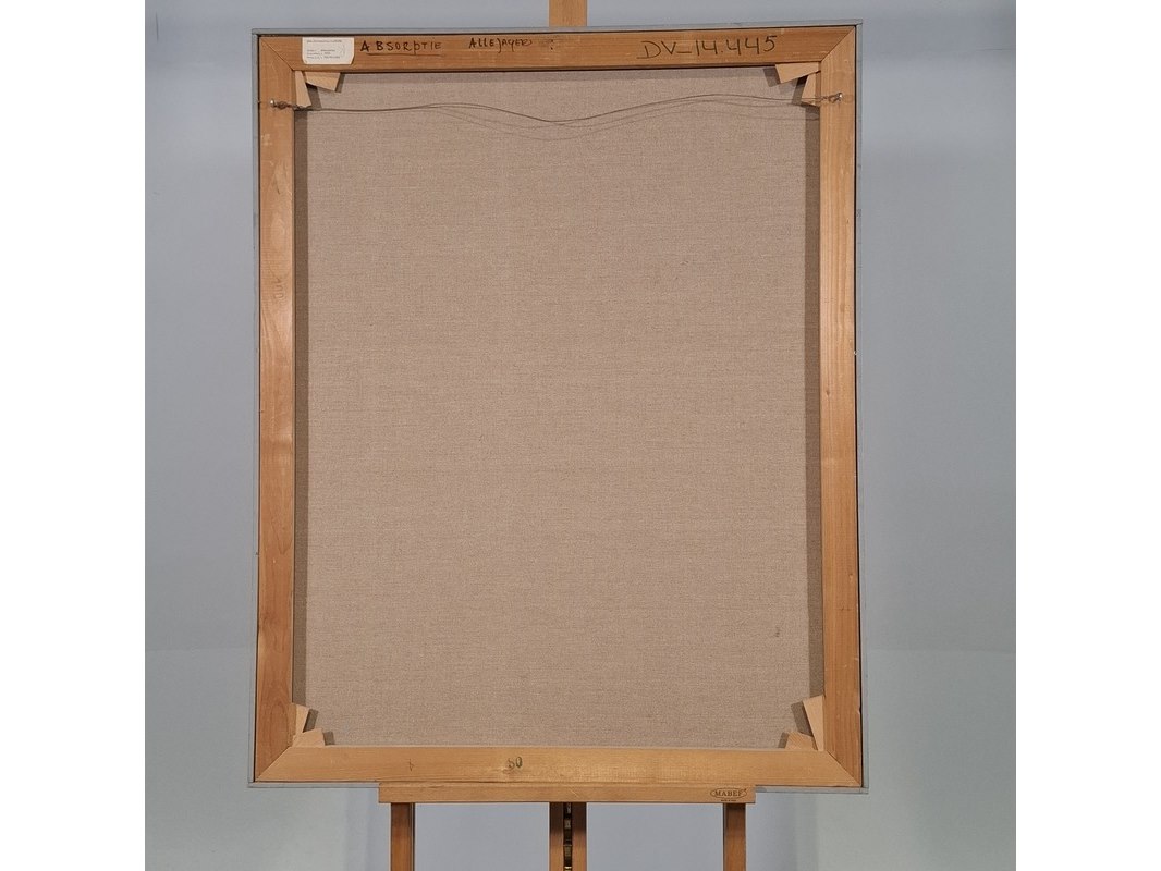 Merk: Andries Jager Product: Schilderij Afmeting: Hxb ca. 102x82 cm BouwJaar: 1983 Specificaties: Diverse beschadigingen op het doek en lijst.