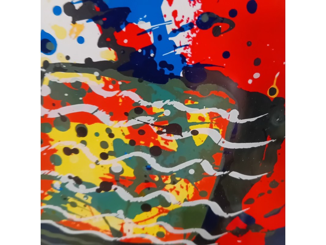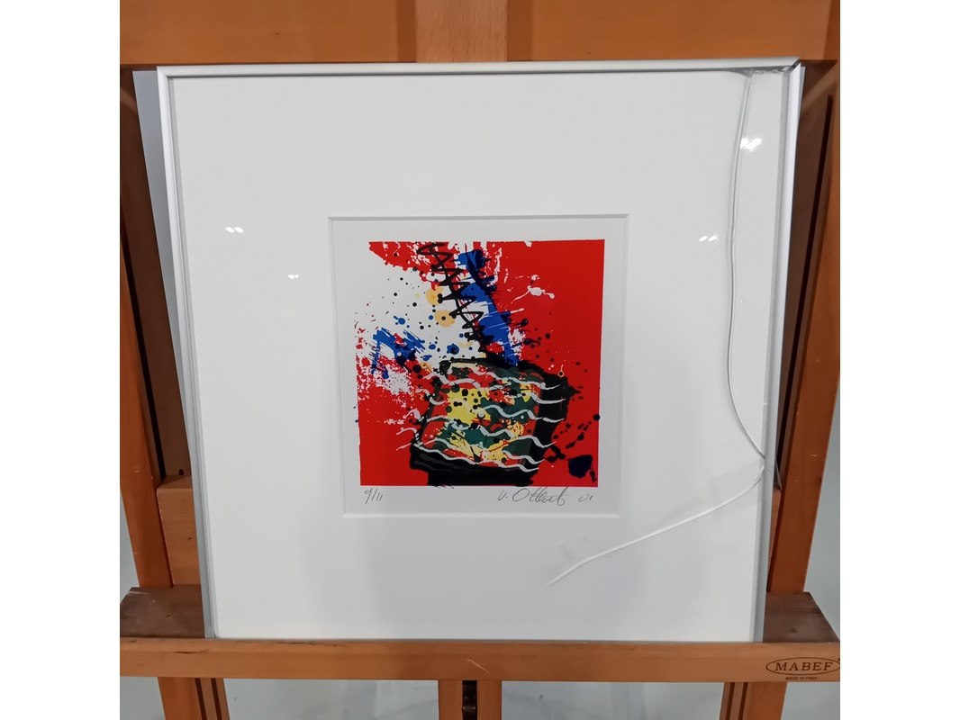 Merk: A. van Otterloo Product: Zeefdruk Afmeting: hxb ca. 36x36 cm Specificaties: Glas in lijst gebroken
