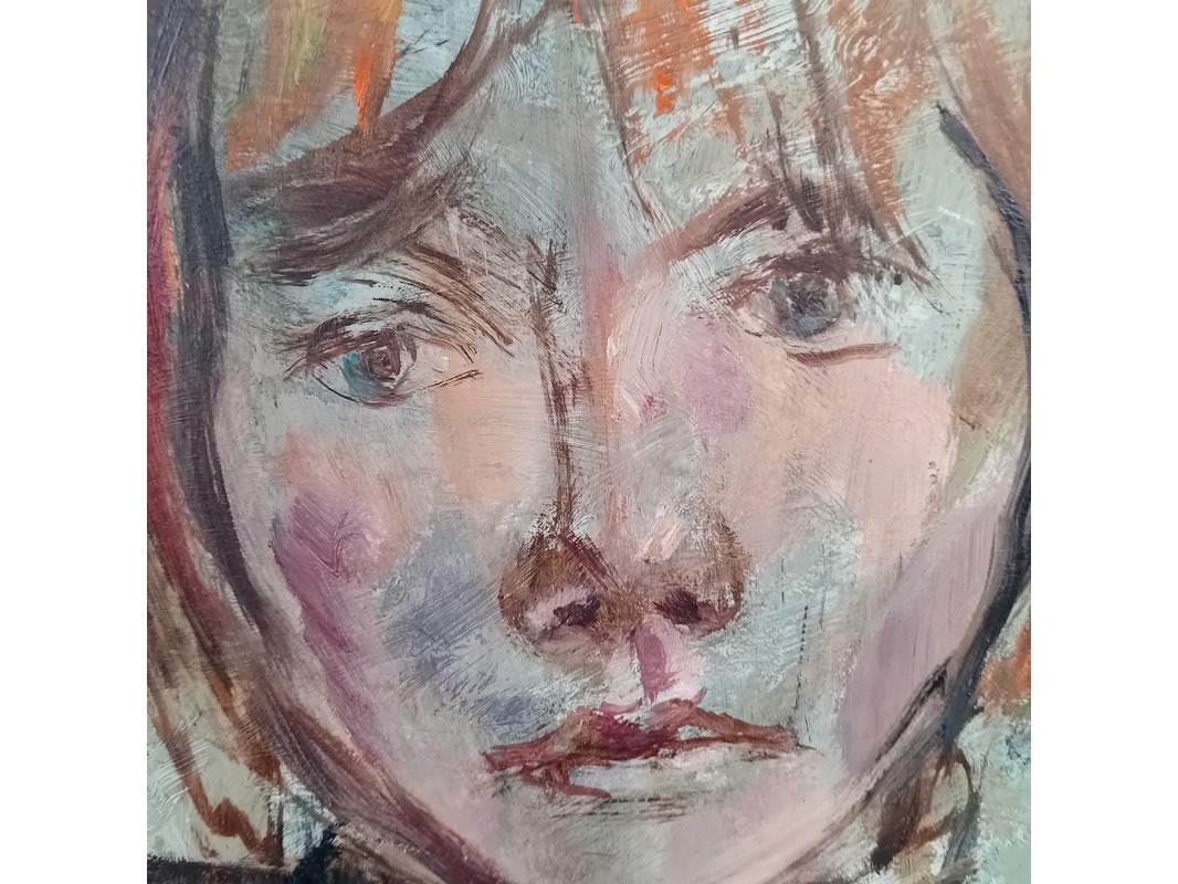 Schilderij, j.m.m. van santen, meisje met fanjack