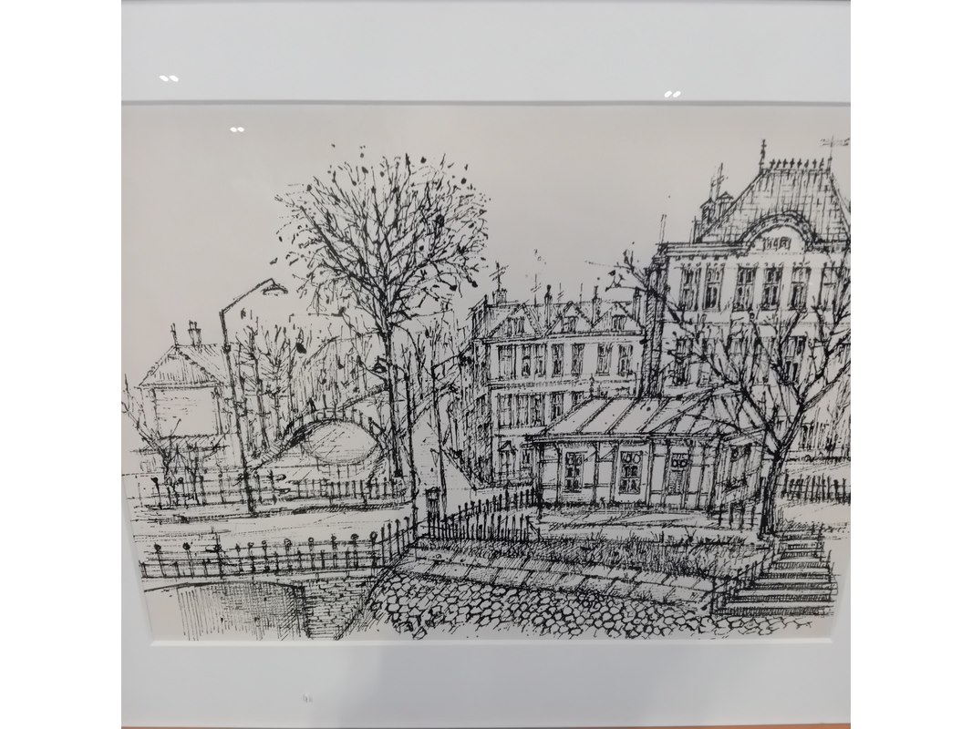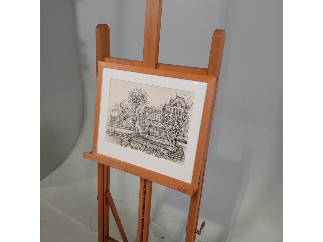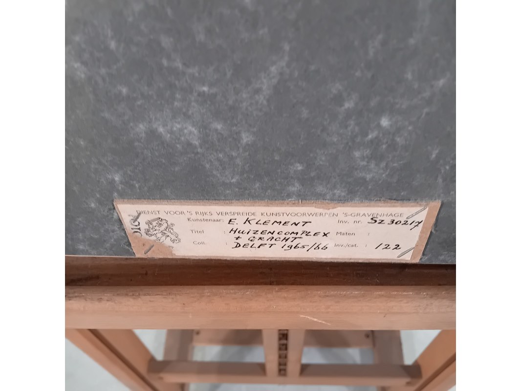 Afbeelding in lijst, e. klement, huizencomplex + gracht