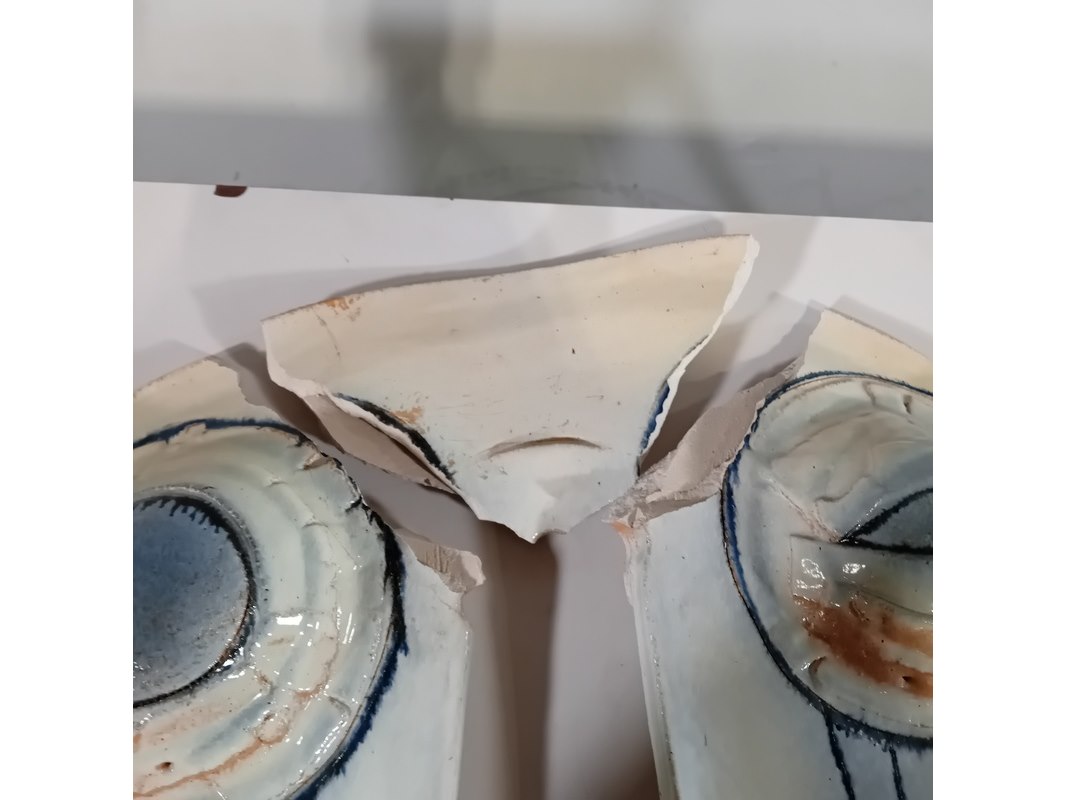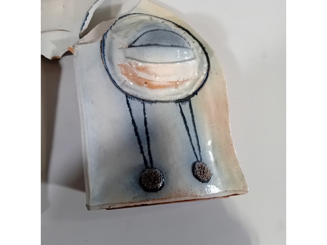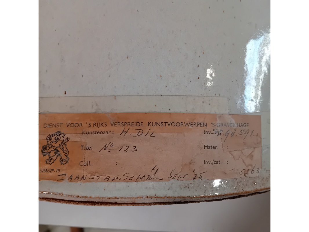 Merk: H. Dil Product: Sculptuur van klei Afmeting: Hxb ca. 40x55 cm Specificaties: Sculptuur is gebroken.