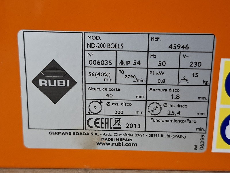 Tegelzaag - 400mm - 230v rubi, nd-200, bouwjaar 2019