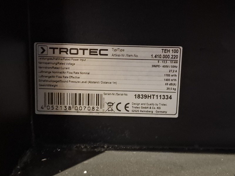 Merk: Trotec Product: Elektroheater 18kW 400V BouwJaar: 2018
