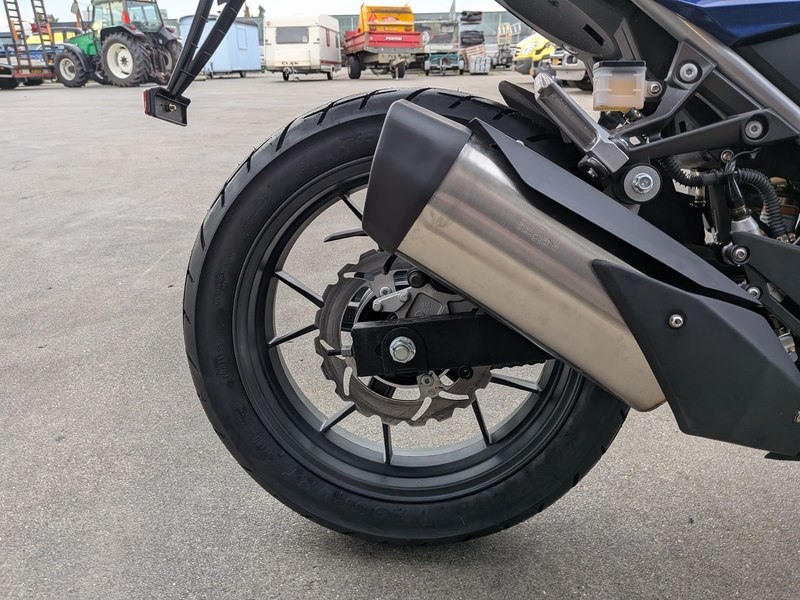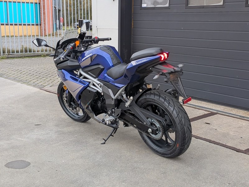 Merk: TRMOTOR Product: Motor Kleur: Blue/black BouwJaar: 2025 Specificaties: Kenteken: Wordt nog geregistreerd, zie opmerkingen Merk: TRMOTOR Type: TR125-2 GP1 Cilinderinhoud: 125cc Aantal cilinders: 1 Bouwjaar: 2025 Gewicht rijklaar: 167 kg Afgelezen tellerstand: 7km Aantal sleutels: 2 VIN: LFGPDJLB4M1A02861 Start: Ja, motor start en loopt Opties en accessoires Elektrische starter 6 versnelling Schijfremmen V+A geschikt vanaf 18 jaar, A1 rijbewijs Opmerkingen Ten tijde van de afgifte zal de motor voorzien zijn van een nieuwe registratie en kentekenplaat. Video https://youtu.be/wLAZKN-AwHw