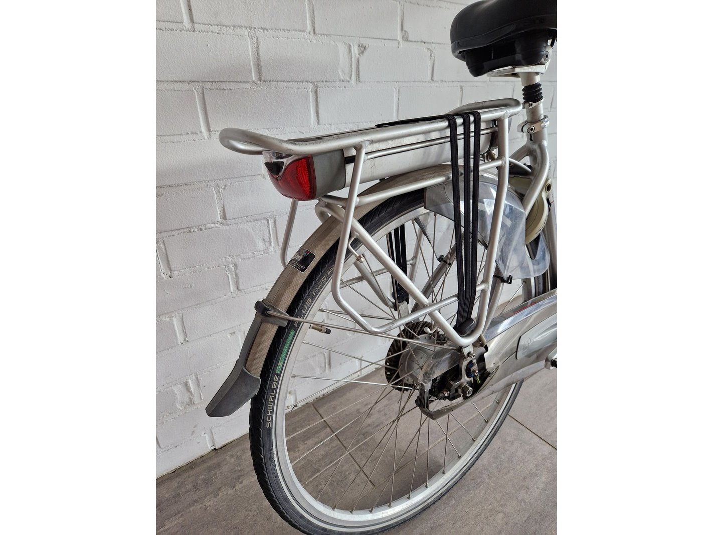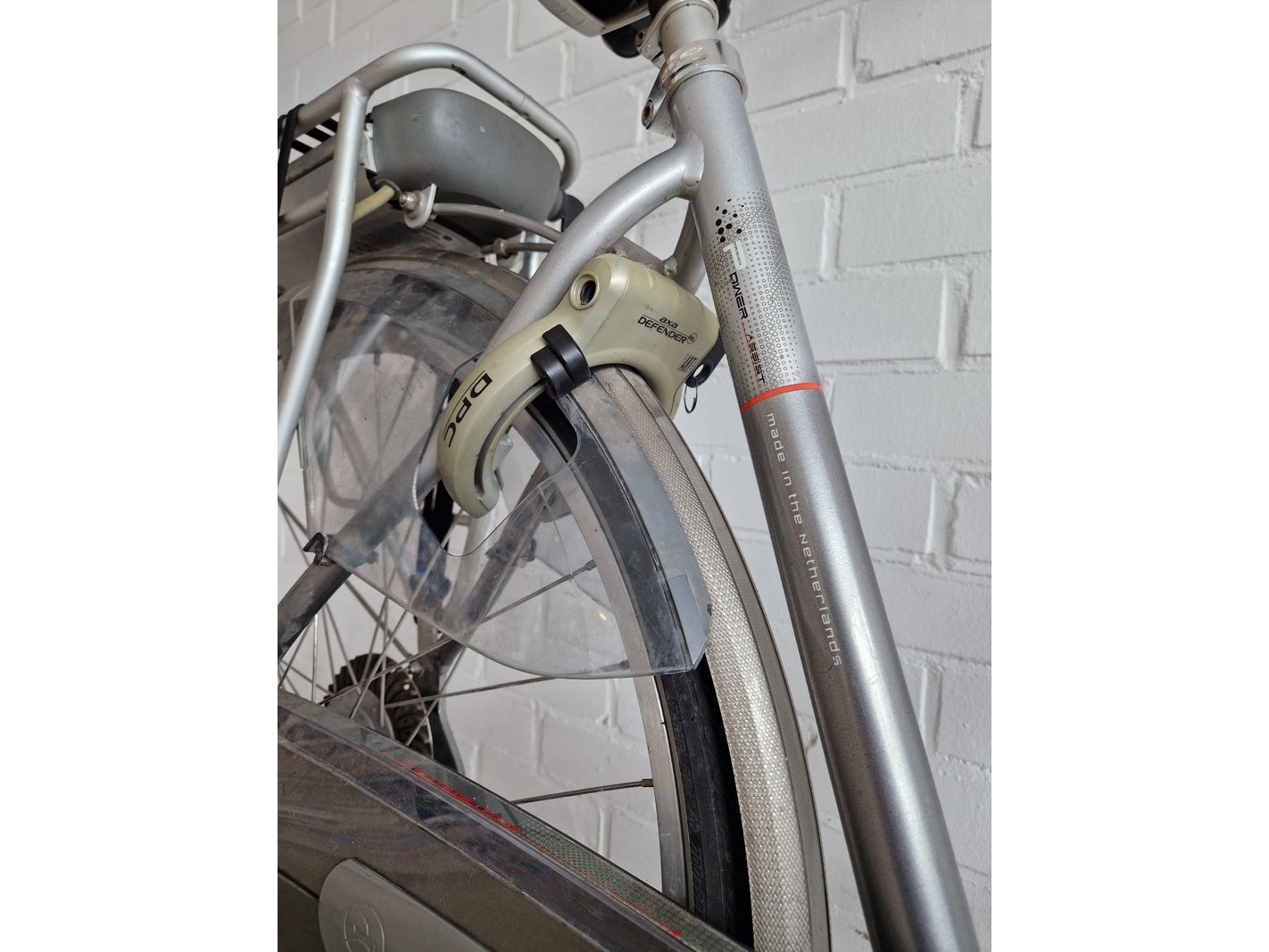 Merk: Gazelle Product: Elektrische fiets Kleur: Grijs / Chroom Materiaal: Aluminium Afmeting: 28 inch BouwJaar: 2010 Conditie: Gebruikt Specificaties:
