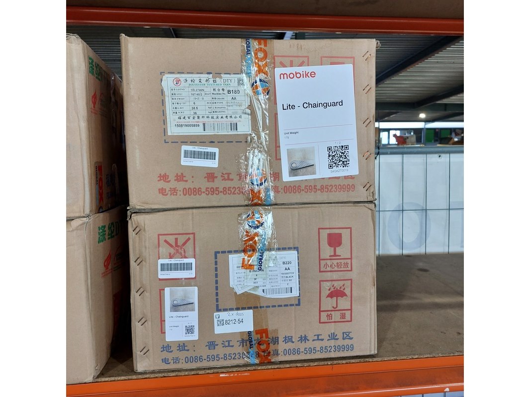 Product: Kettingscherm fiets Kleur: Grijs Materiaal: Kunststof Afmeting: Gewicht / stuk: 187 g Conditie: Nieuw Specificaties: 2 dozen @ 35 stuks. Afmetingen per doos: 640 x 460 x 280 mm.