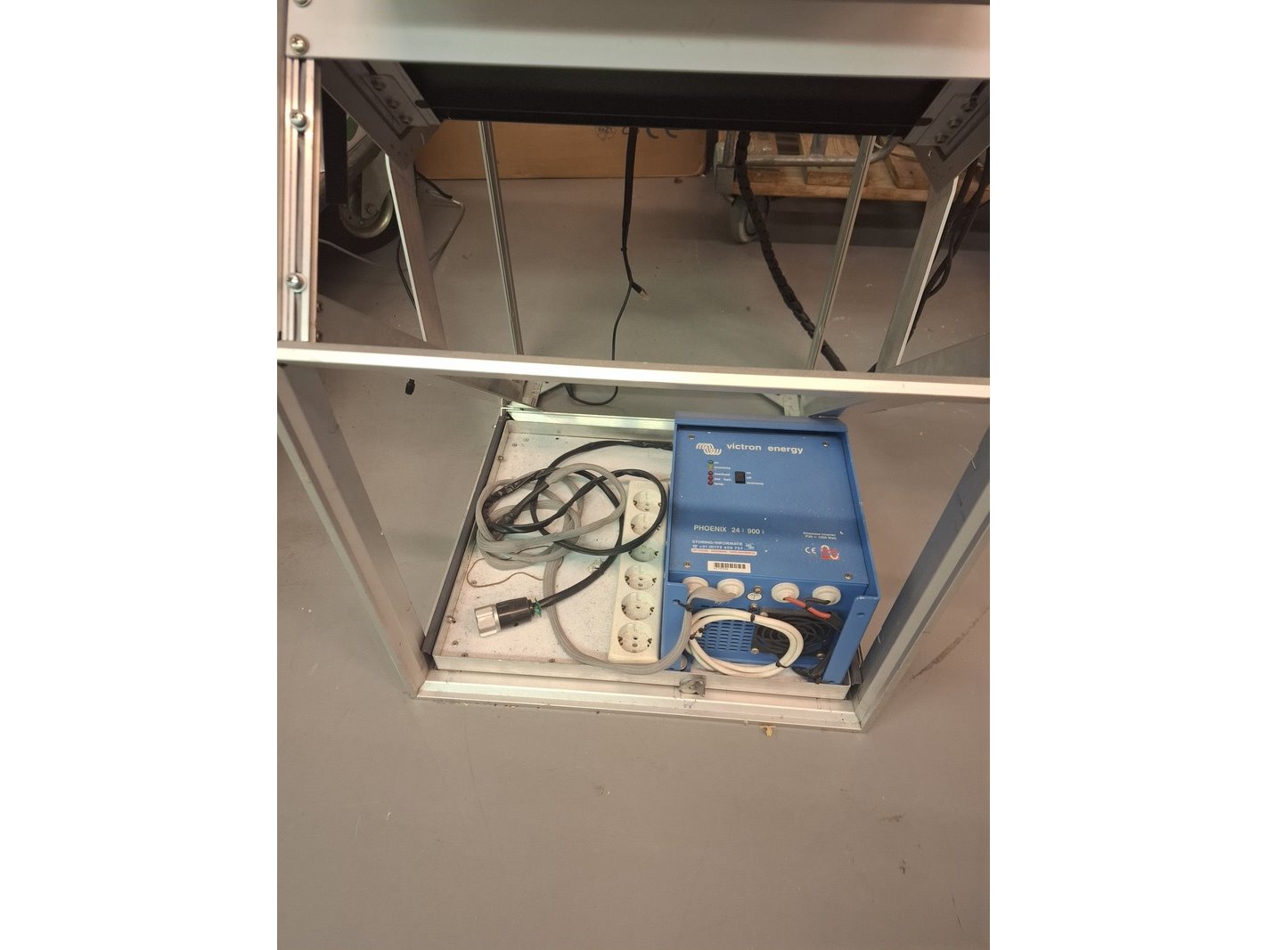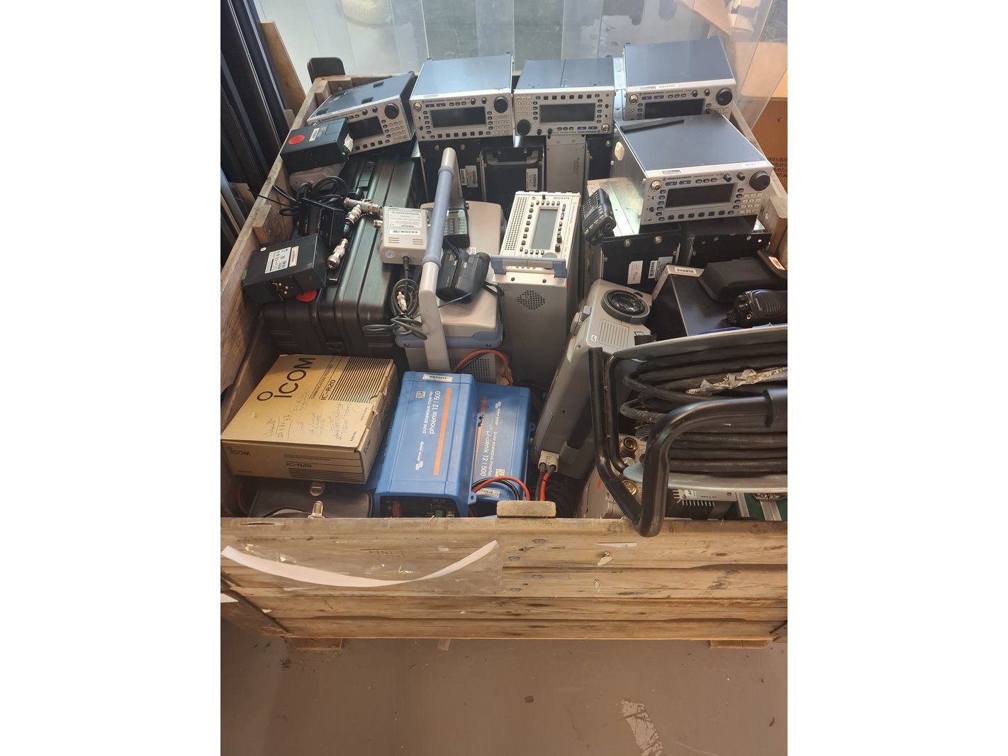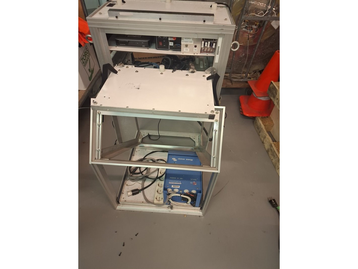 Product: Elektronica en energievoorziening Conditie: gebruikt Specificaties: Een assortiment professionele elektrische en elektronische apparatuur. Inhoud onder meer: • Victron Energy battery balancer • Victron Phoenix 24 omvormers • Bedieningspanelen met diverse schakelaars • Draagbare behuizing met elektronische modules • Metalen trolley met elektrische componenten • Tafelzaag op verrijdbaar onderstel • Behuizing zend- en ontvangststation (VHF) • Elektrische verdeelkast • Industriële schakelkast • 2x doos met diverse kabels • Spectrum analyser-ontvanger