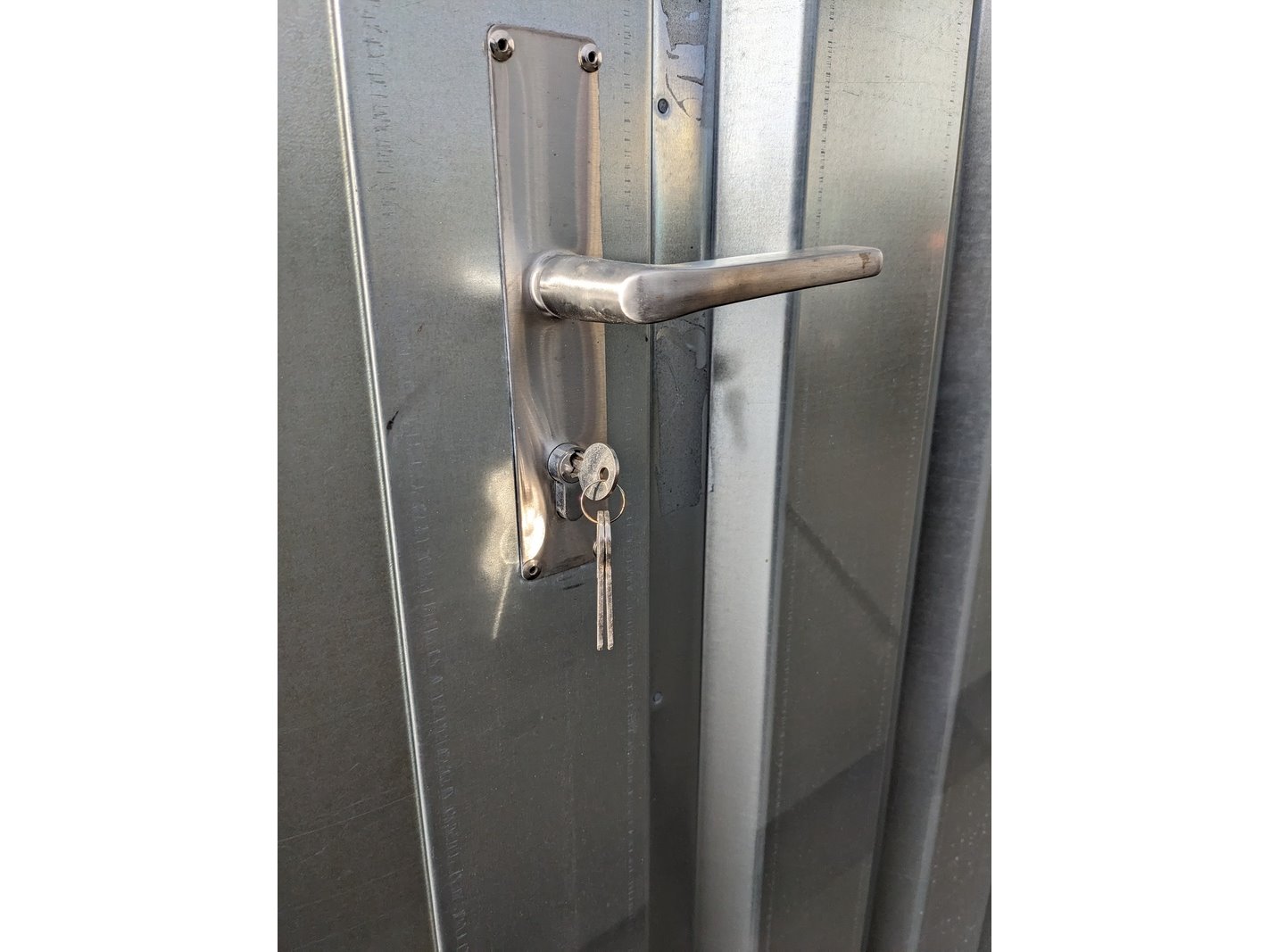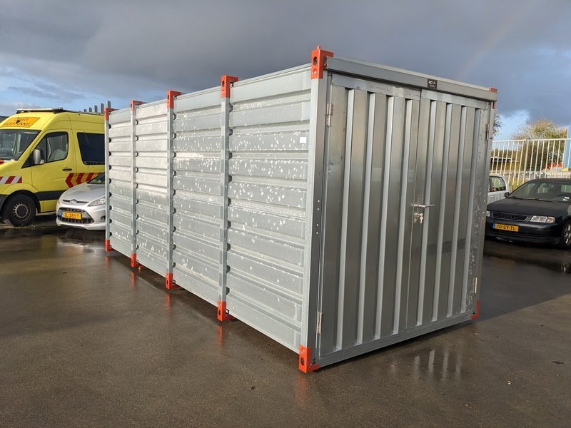 Merk: Kovobel Product: Materiaalcontainer 5 meter gemonteerd Materiaal: Staal Afmeting: Ca. 5000x2200x2200mm BouwJaar: 2023 Conditie: Gebruikt Specificaties: Geheel gegalvaniseerd, dus zeer lange levensduur, dubbele deuren aan de korte zijde, gemonteerd geleverd met vurenhouten vloer. Demontabel, breedte binnen en stahoogte 200cm, deuropening 191,5cm. Zijwand geoxideerd door zout