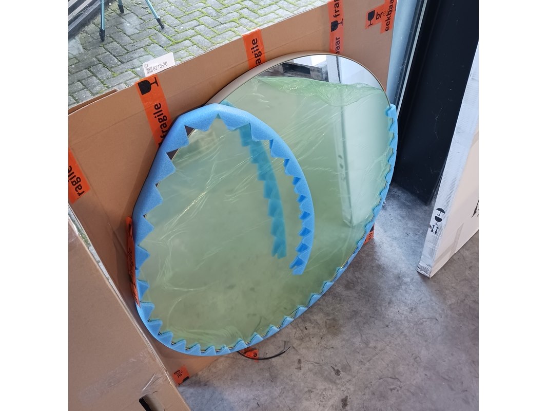 Merk: Xenz Product: Badkamerspiegel Kleur: Mat goud Afmeting: 100cm Specificaties: LED verlichting rondom, spiegelverwarming en sensorbediening