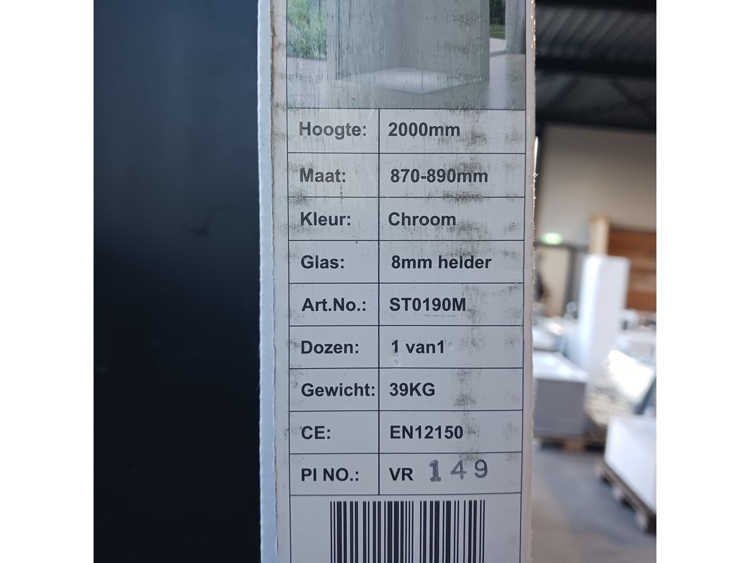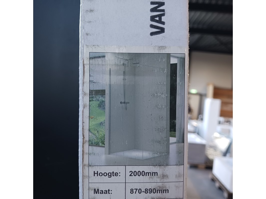 Merk: van Rijn Product: Inloopdouche Kleur: Chroom Materiaal: 8 mm veiligheidsglas Specificaties: Breedte 87/89cm, hoogte 200cm