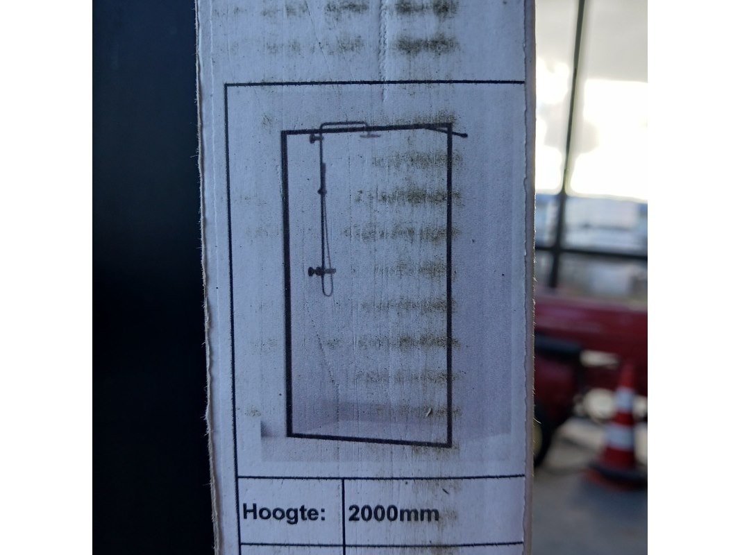 Merk: van Rijn Product: Inloopdouche Kleur: Mat zwart Materiaal: 8 mm veiligheidsglas Specificaties: Breedte 87/89cm, hoogte 200cm, incl. stabilisatiestang