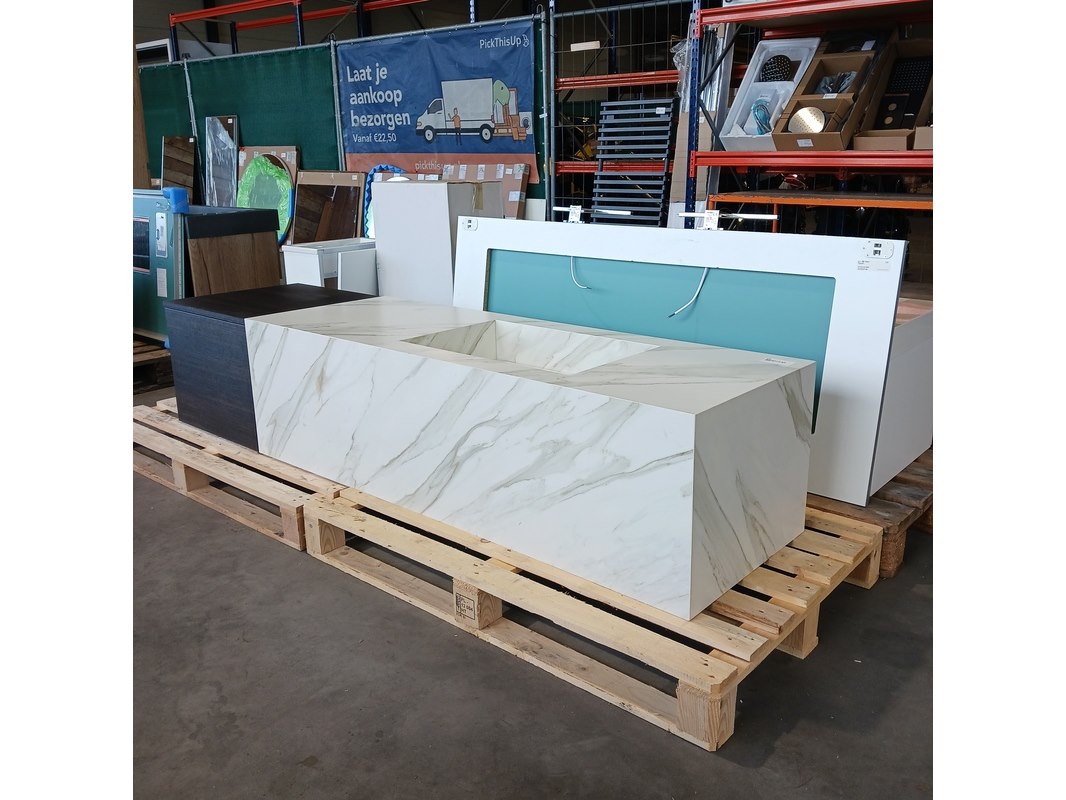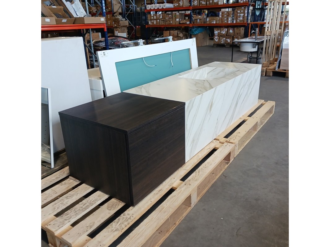Merk: Edoné Product: Badmeubel Materiaal: marmer Afmeting: 200x51cm Specificaties: Verdekte afvoer, 1 lade met softclose, B-keuze