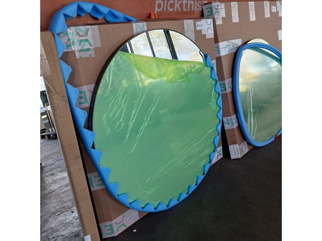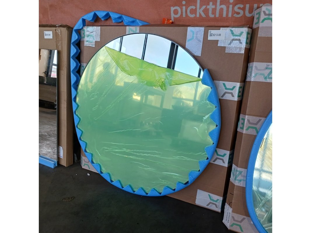 Merk: Xenz Product: Badkamerspiegel Kleur: Gun metal Afmeting: Ø80cm Specificaties: LED verlichting rondom, verwarming en sensorbediening