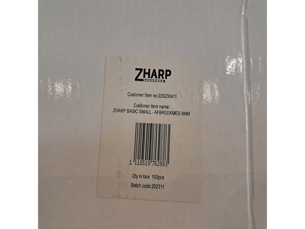 Merk: ANZA / ZHARP Product: Stanleymessen en schildershandschoenen Kleur: wit Conditie: Nieuw Specificaties: 3 x doos stanleymes a 100 stuks per doos en 120 paar ANZA handschoenen in de maten L/XLenXXL