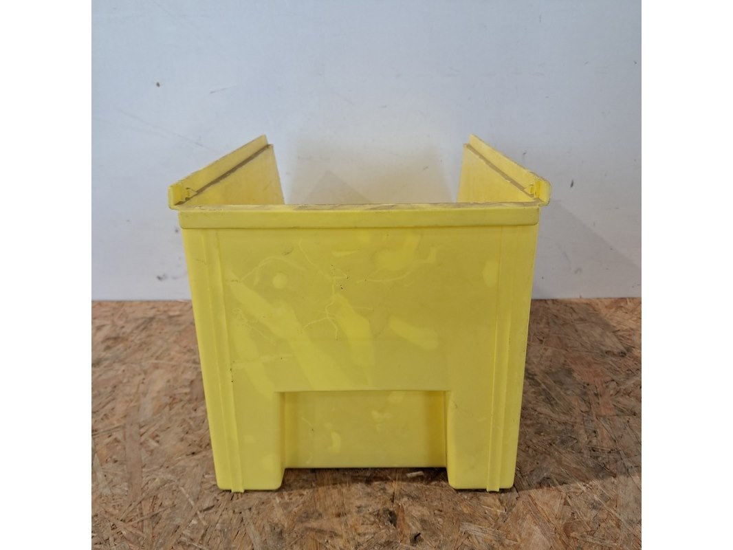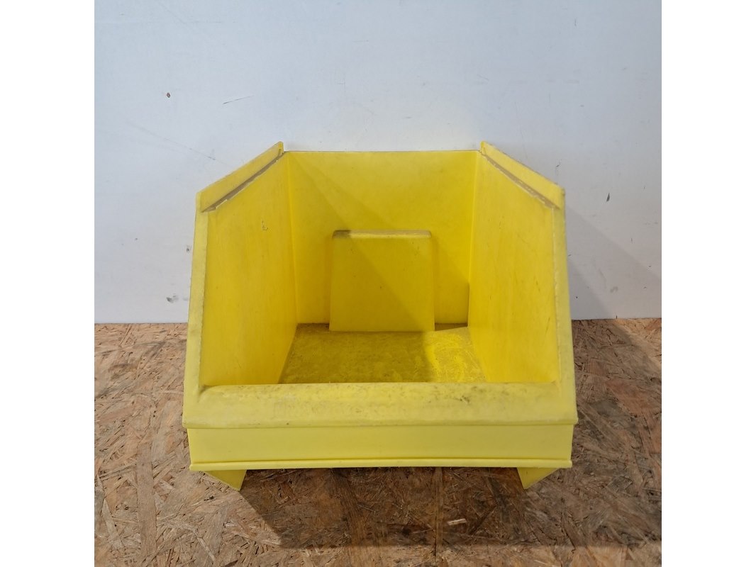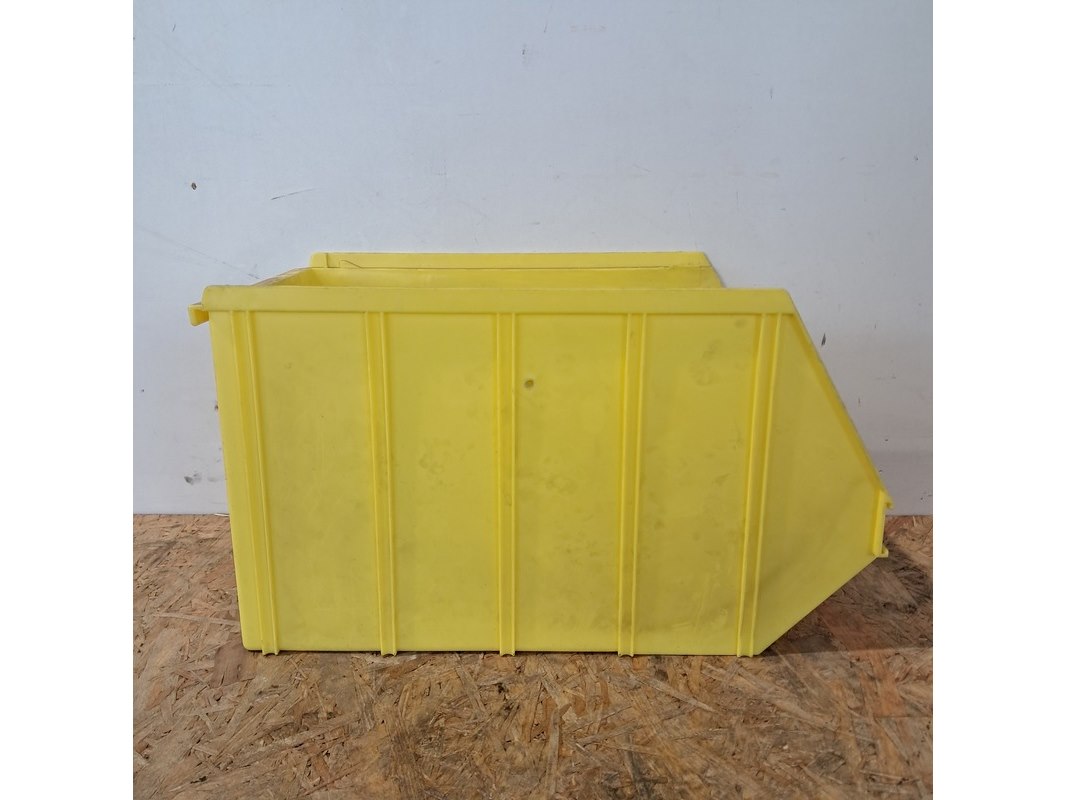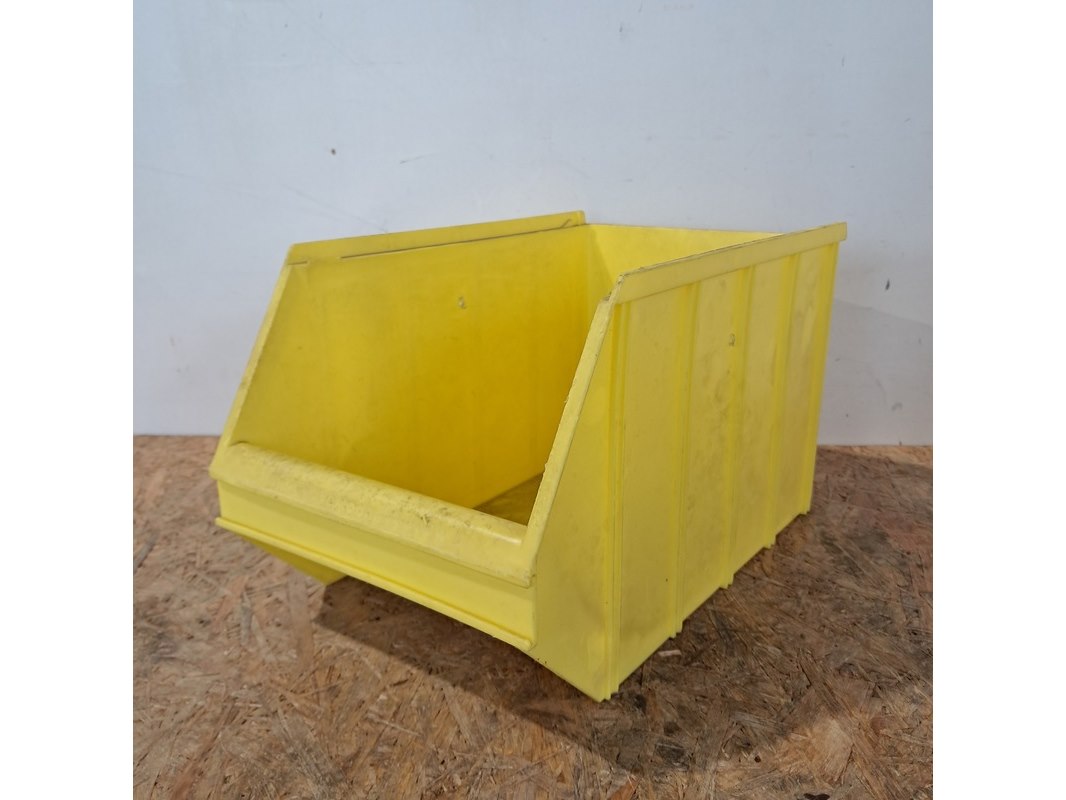 Merk: Overtoom Product: Magazijnbakken met grijp opening Kleur: Geel Materiaal: Kunststof Afmeting: 35x20x20 cm Conditie: Gebruikt Specificaties: Stapelbare magazijnbakken met etikethouder Merk overtoom in nette staat