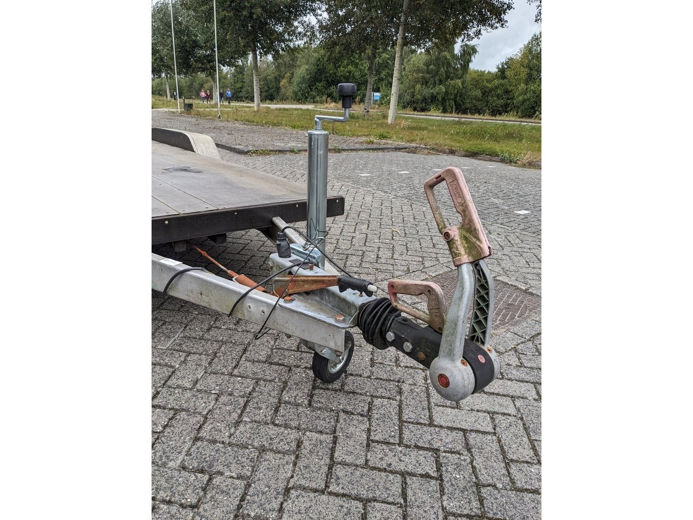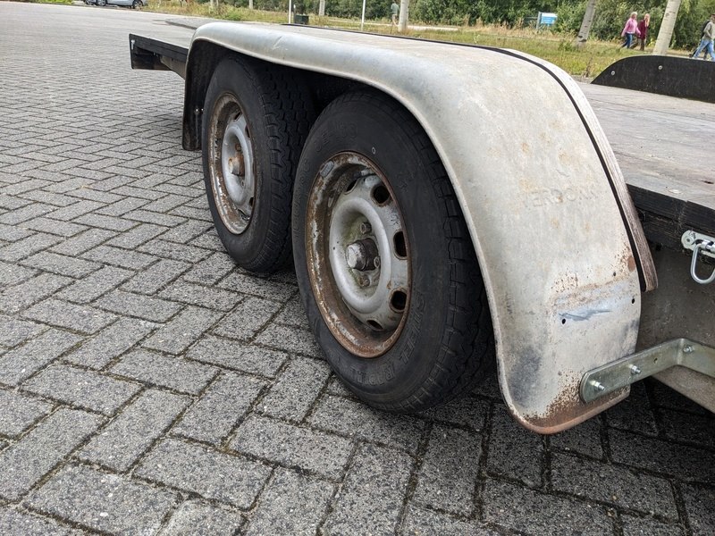 Product: Plateau aanhanger Afmeting: 1m55 tussen de spatborden en 5m50 lang Conditie: Gebruikt Specificaties: Plateau aanhanger 1m55 tussen de spatborden en 5m50 lang multiplex vloer 24mm Led verlichting Oplooprem met koppeling