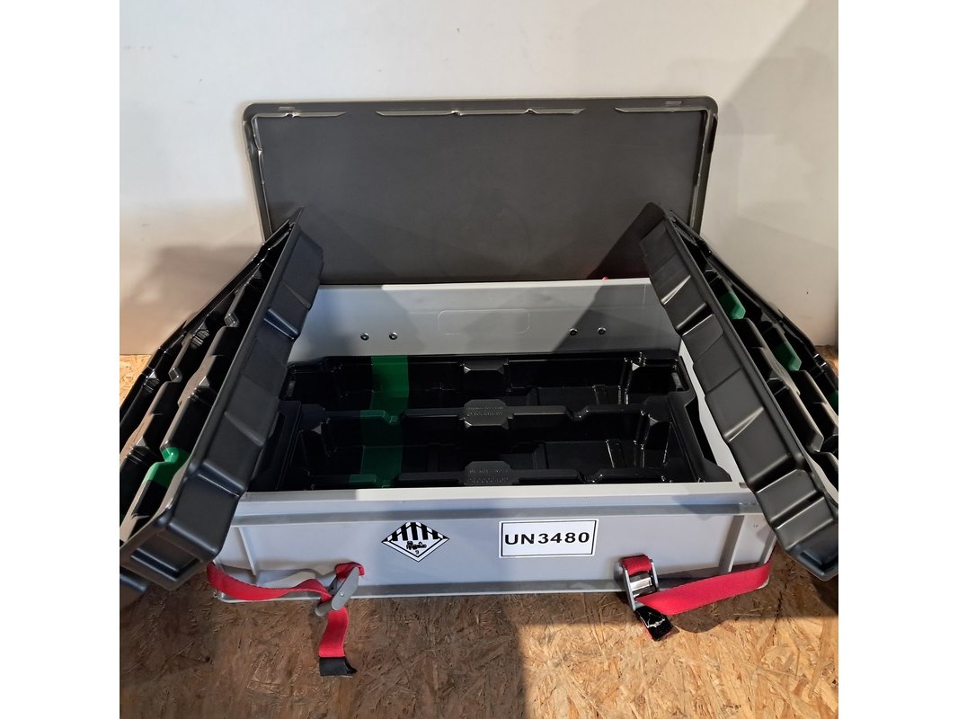 Product: Opbergkist met 3x inzet en transportkar Afmeting: lxbxh ca. 60x40x18cm Specificaties: Inclusief opbergframe voor 4x transportkar.