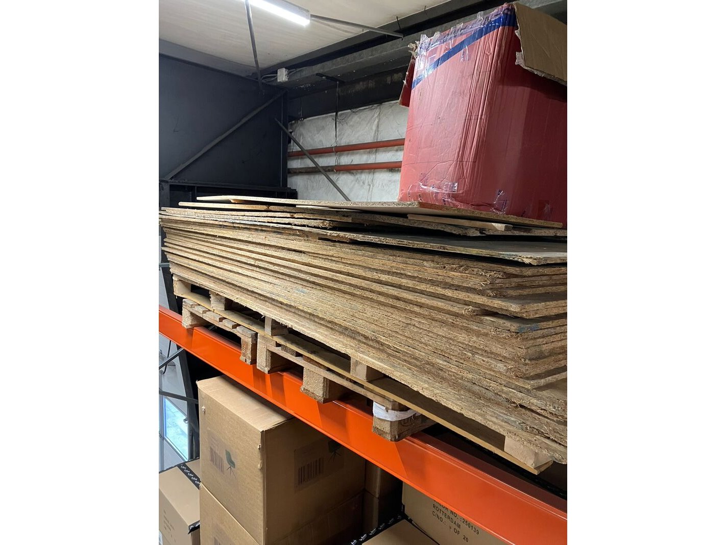 Product: Spaanplaten Afmeting: ca. 3m x 2m Conditie: Gebruikt Specificaties: Partij 19 spaanplaten van diverse afmetingen van ca. 2m x 1m tot 3m x 2m. Hoeken en kanten vertonen lichte sporen van gebruik.