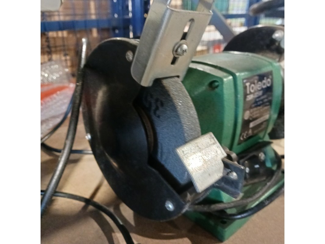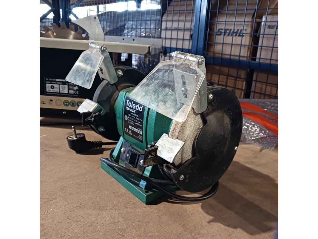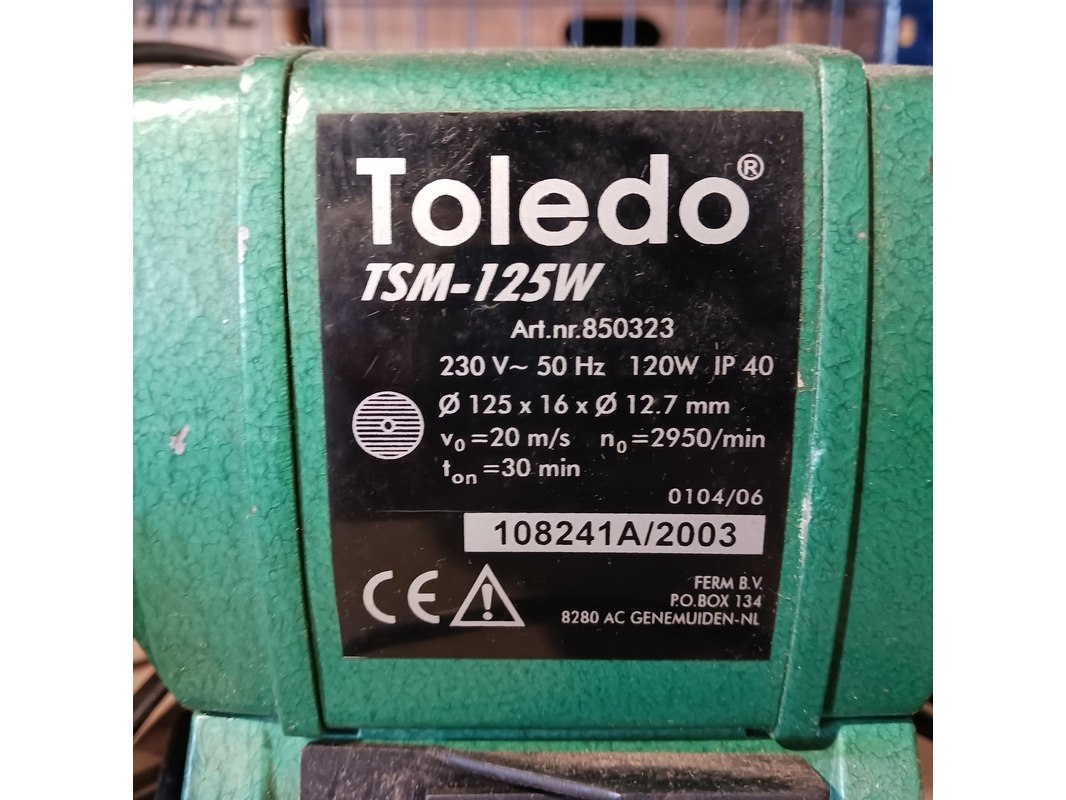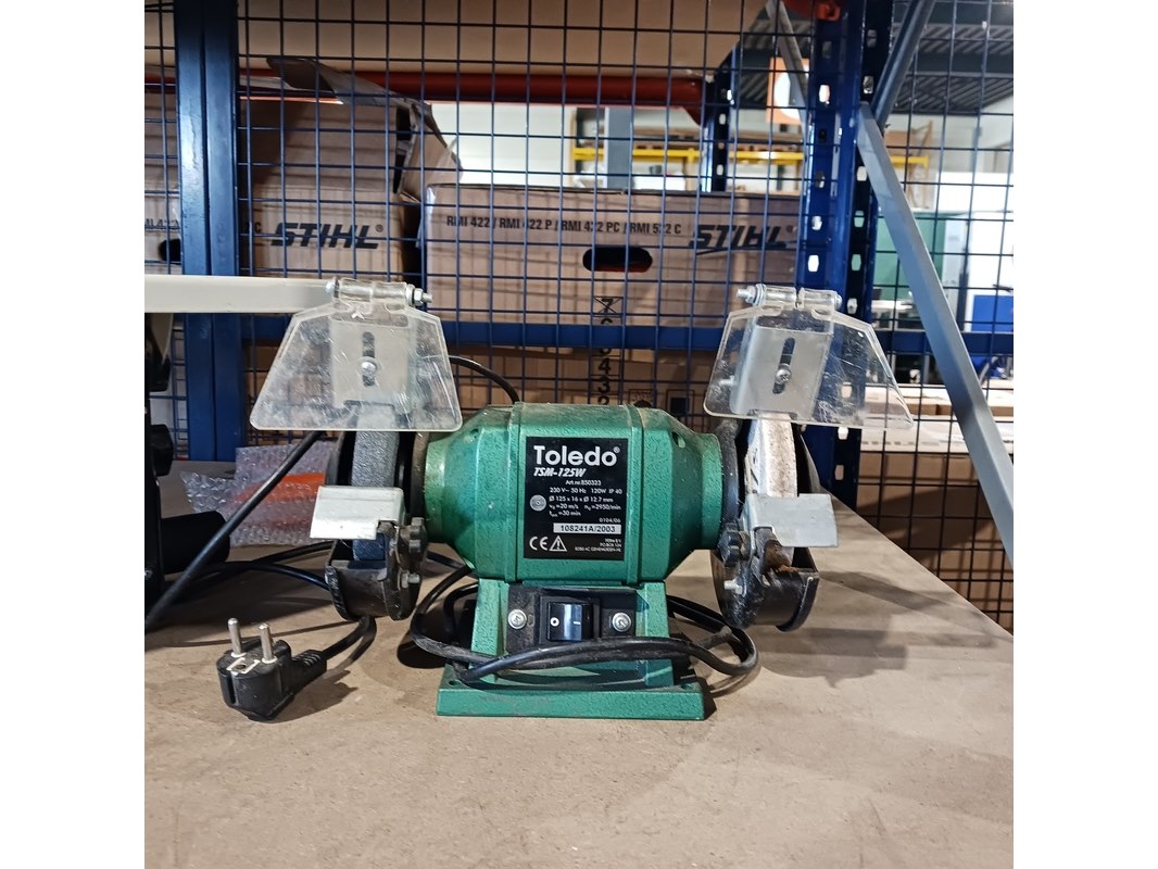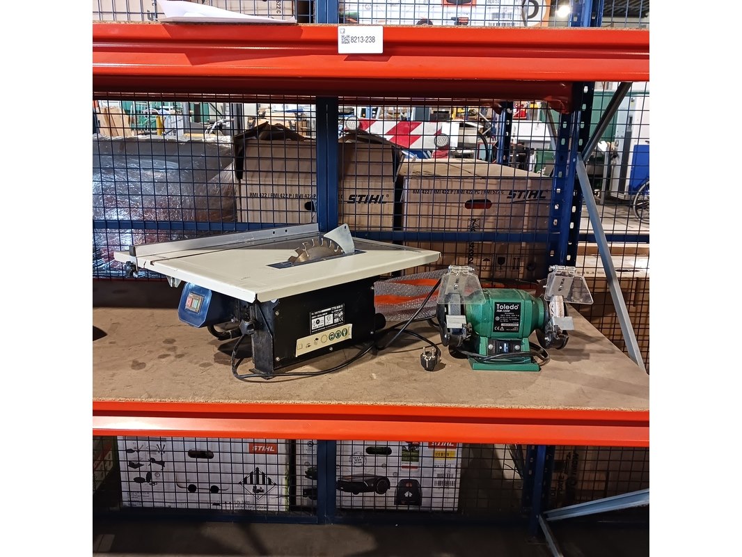 Merk: TopCraft en Toledo Product: Tafelzaag en slijpmachine Specificaties: Tagelzaag TopCraft, TTS 800 C, 230V. (55x57x30 cm, ingeklapt) Slijpmachine Toledo, TSM-125W, 230V. (30x20x25 cm)