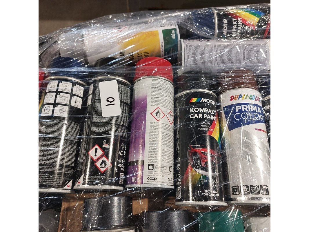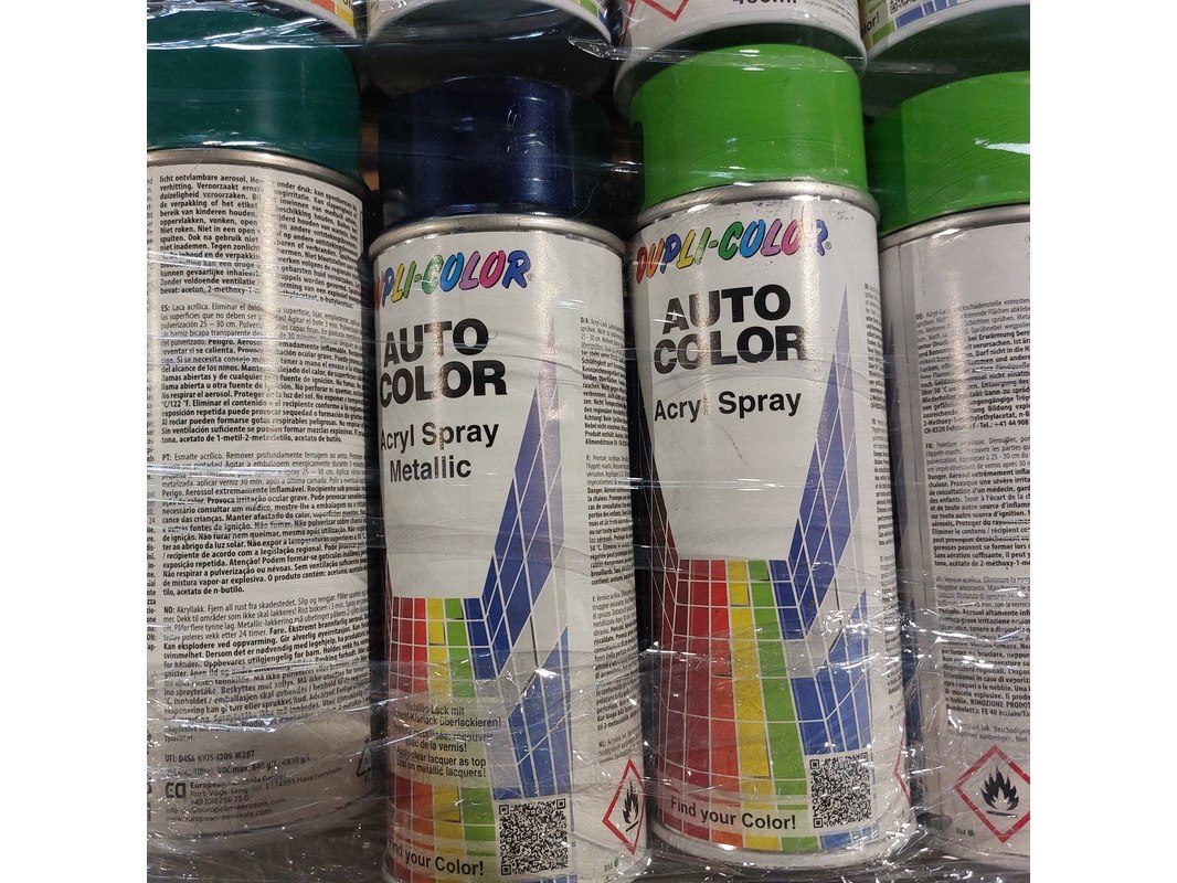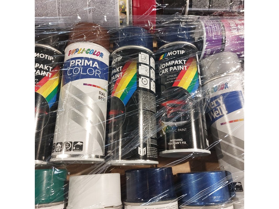 Product: Diverse spuitbussen Conditie: Nieuw Specificaties: Bevat onderandere Autolak, Vernis, Graniet spray en spuitverf in div kleuren van coop, Motip en Duplicolor Bevat 2 lagen vernis in 2 kleuren