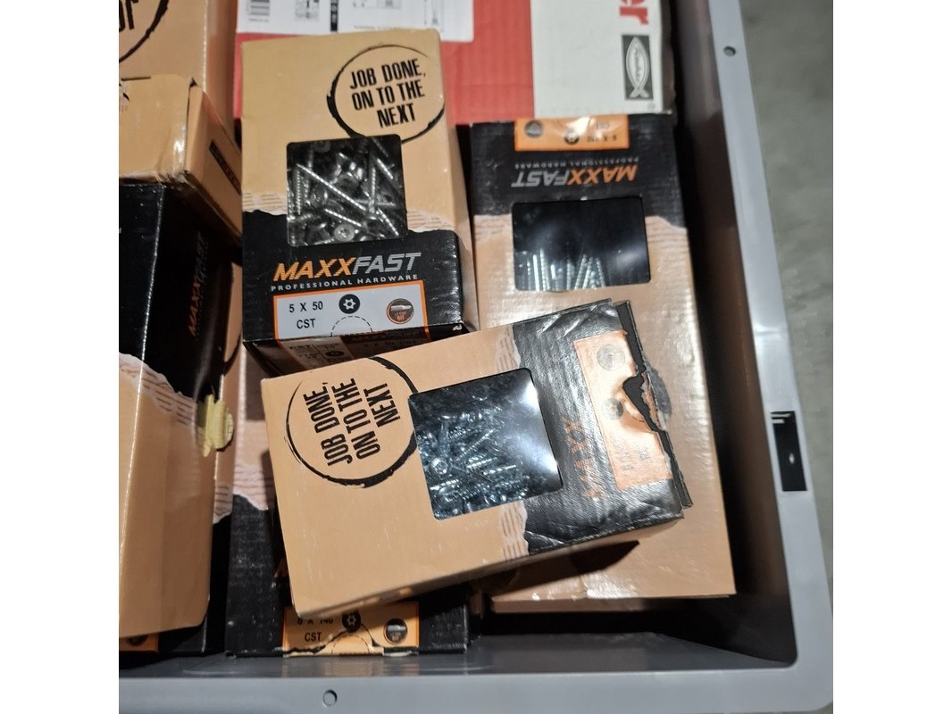 Partij diverse schroeven, bouten, moeren en ringen, o.a. maxxfast, fisher, fabory