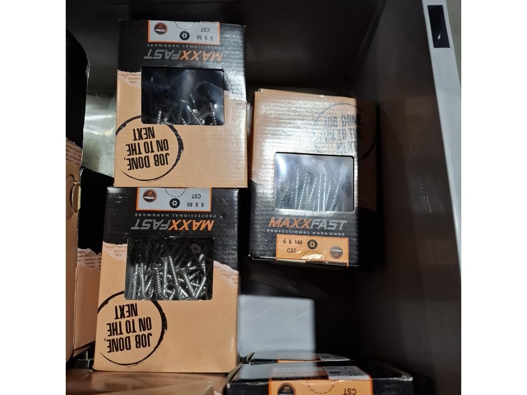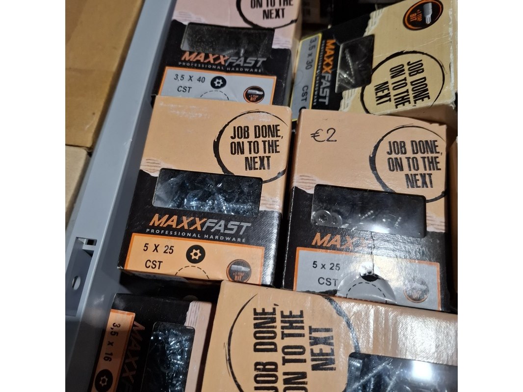 Merk: o.a. Maxxfast, Fisher, Fabory Product: Partij diverse schroeven, bouten, moeren en ringen Afmeting: diverse soorten en maten Conditie: Nieuw Specificaties: