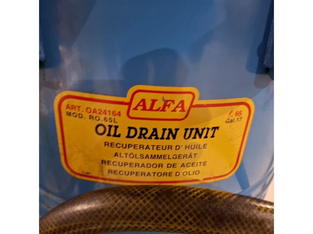 Merk: o.a. Alfa Product: Olie opvangunit met 2x olie opvangbak met tuit Afmeting: ca. 65 liter Conditie: Gebruikt Specificaties: Inclusief 3x opvangbak