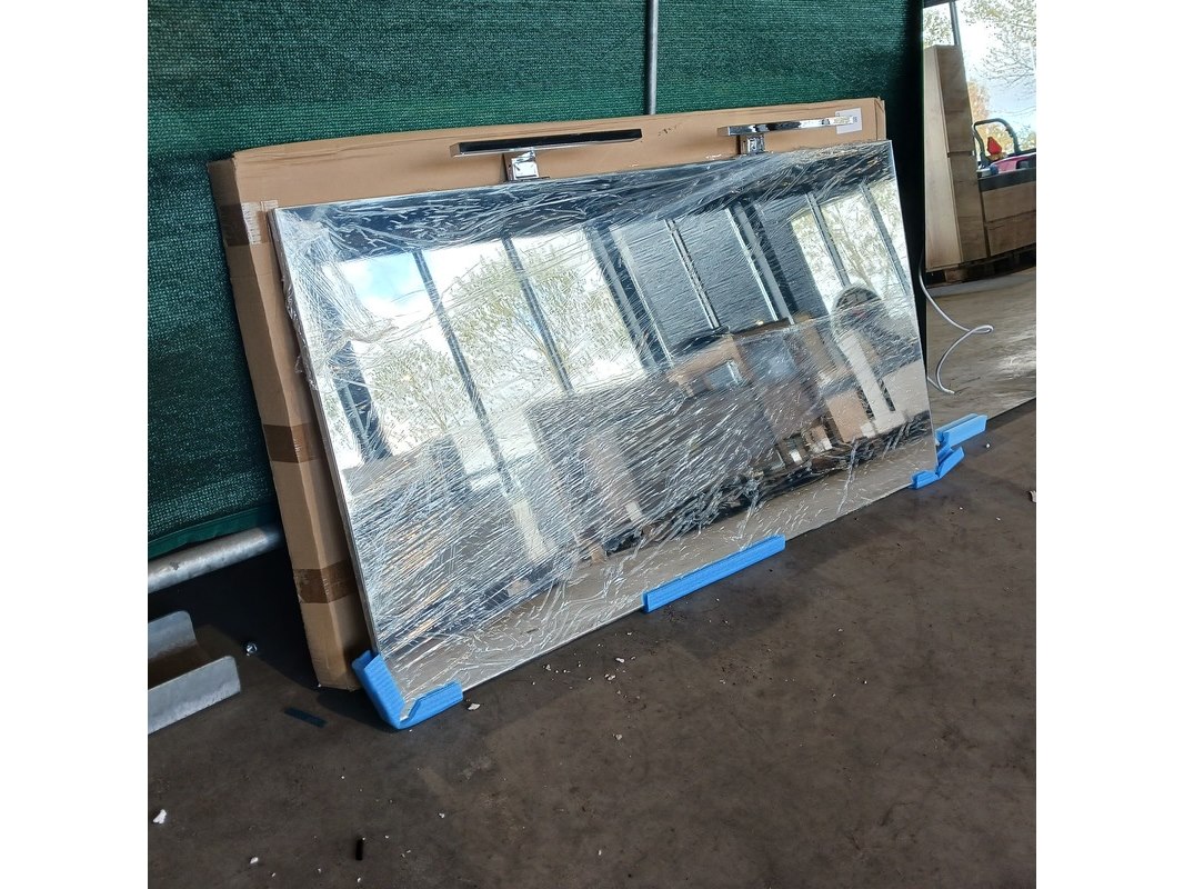 Product: Badkamerspiegel Afmeting: 120x65cm Specificaties: 2x verlichting