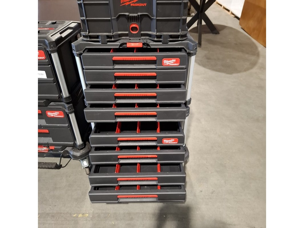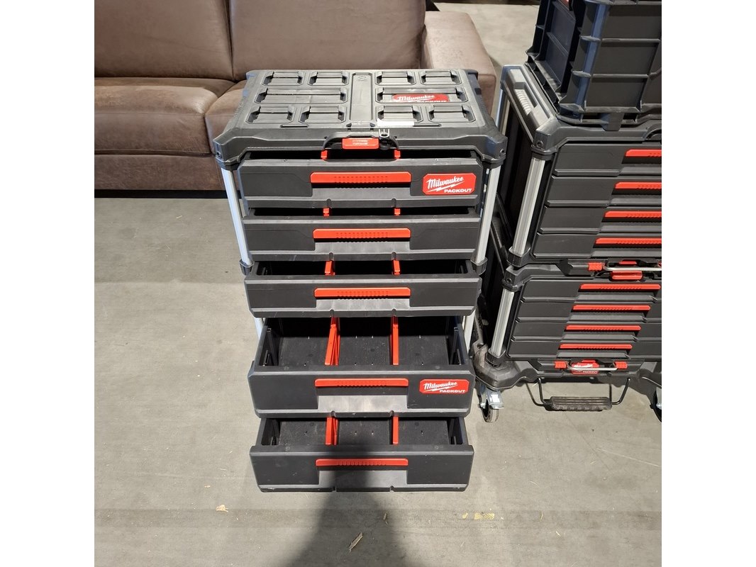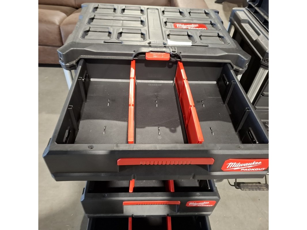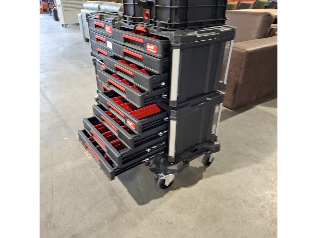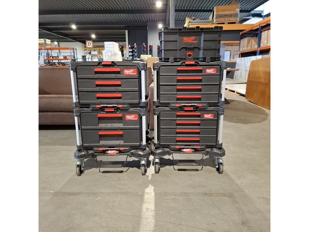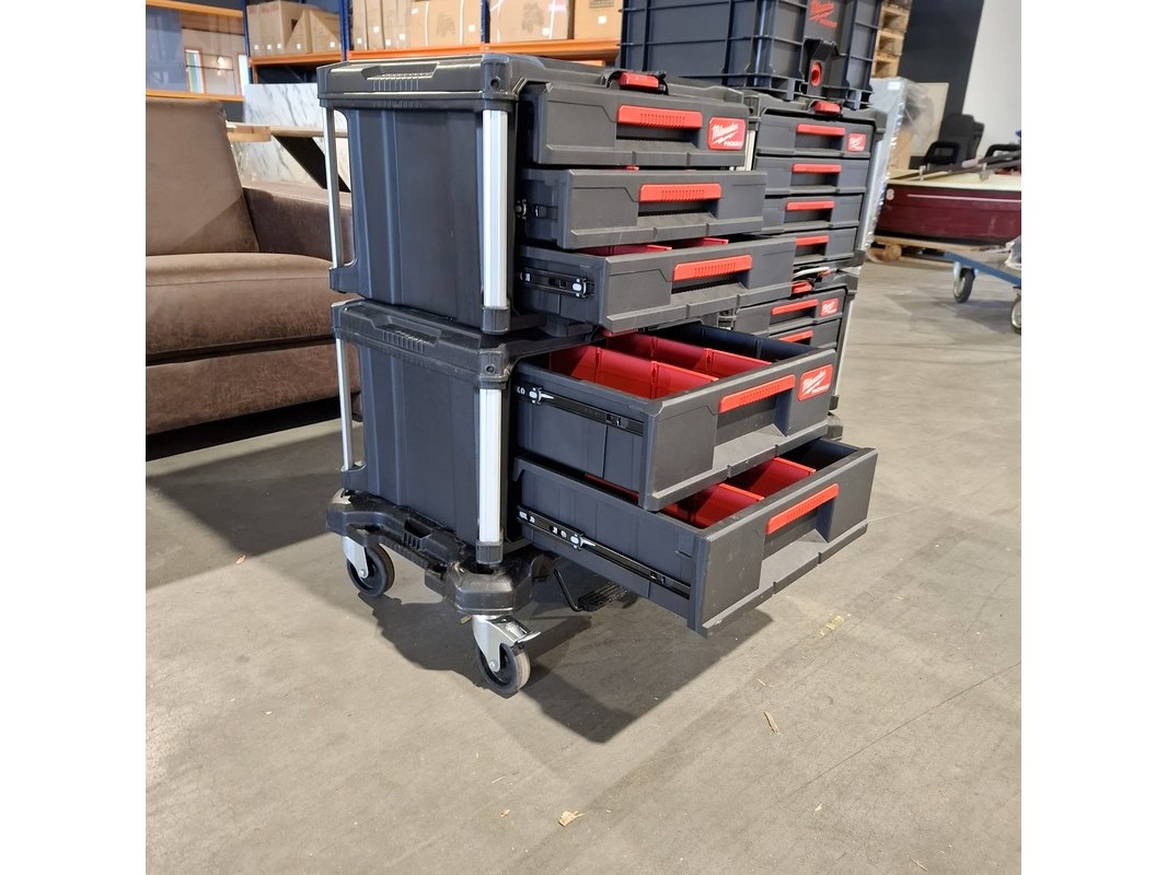 Merk: Milwaukee Product: Gereedschapskarren Conditie: Nieuw Specificaties: Inclusief kist met diverse schotjes, de gereedschapskarren zijn leeg