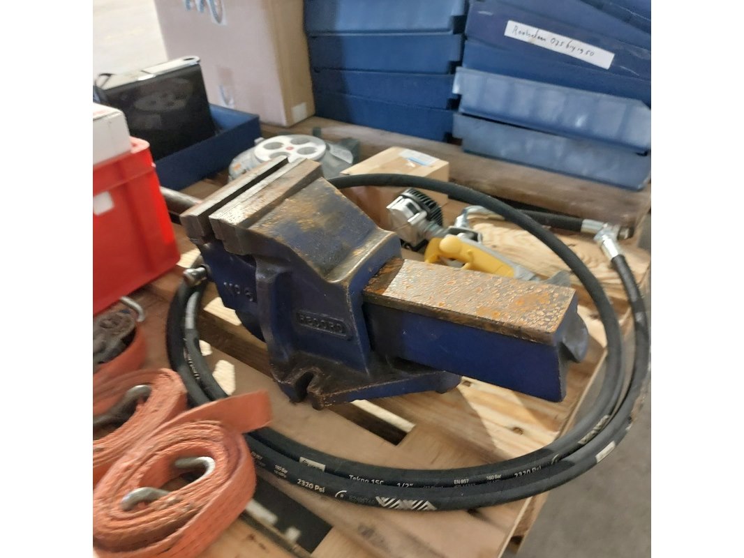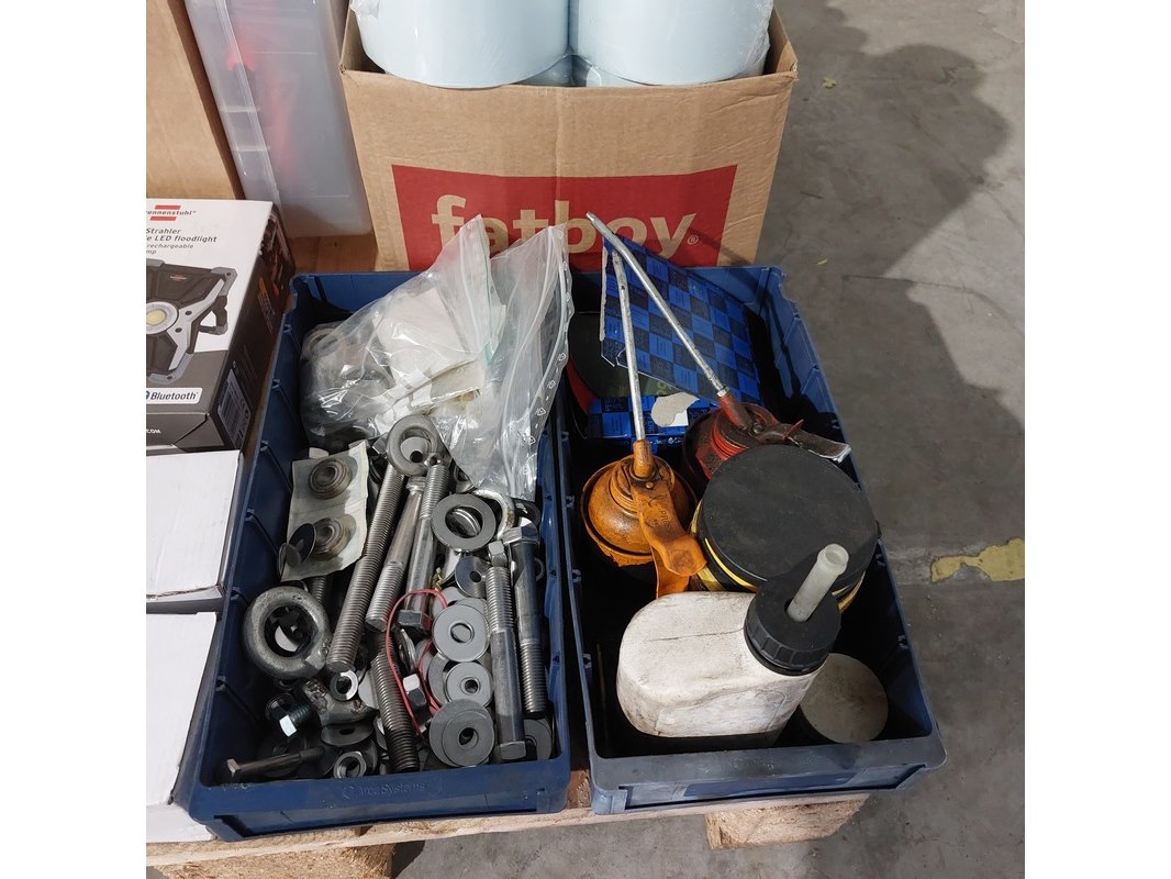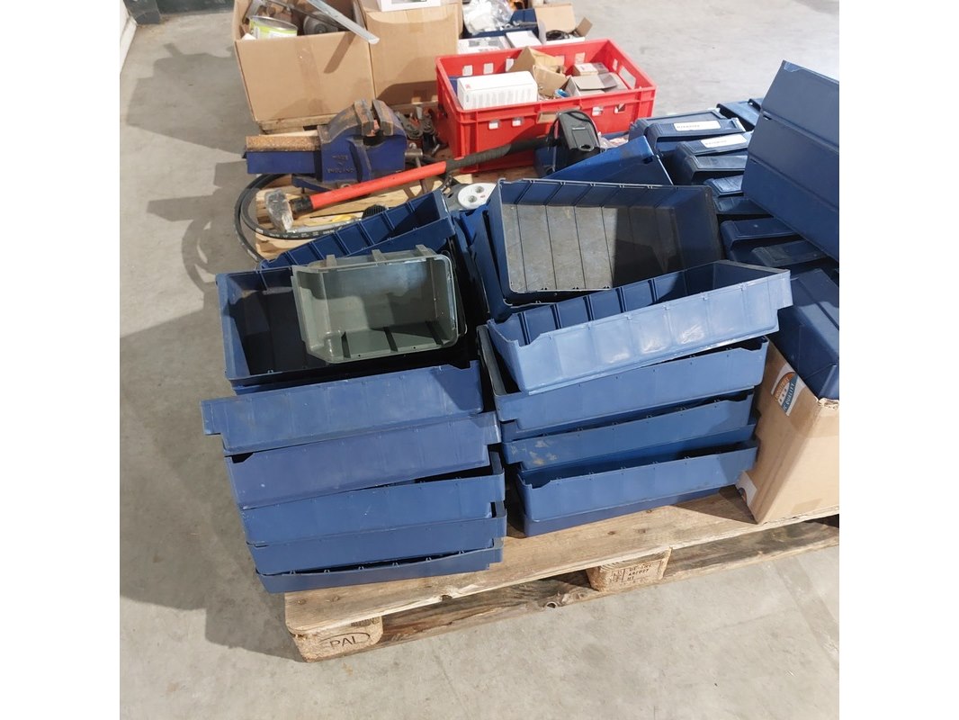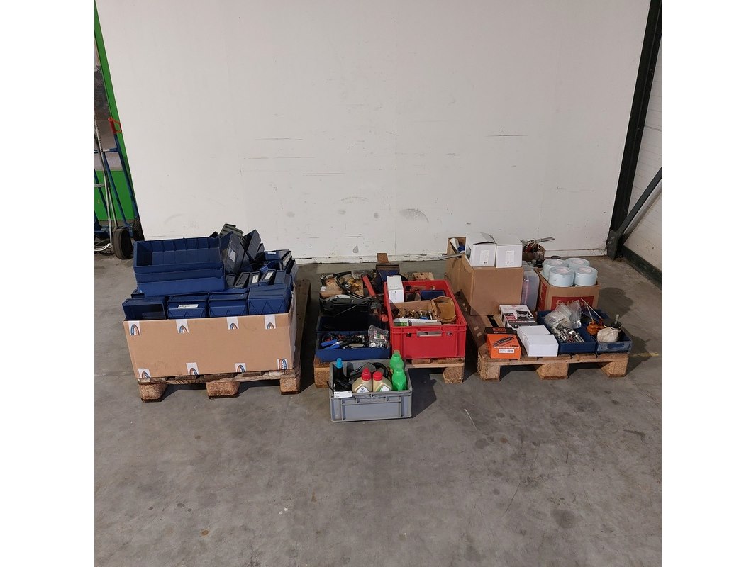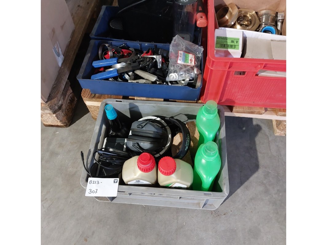 Product: Partij diversen Conditie: Gebruikt Specificaties: Bestaande uit o.a.: Diverse magazijn bakken, bankschroef, moker, divers handgereedschap, koffiezetapparaat, diverse vloeistoffen, divers ijzerwaar, batterij lader Black+Decker, mobiele Led-accu-werklamp, installatiemateriaal, etc.