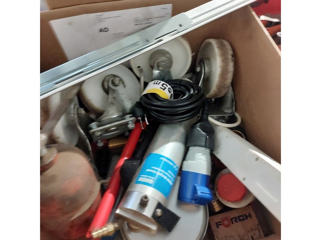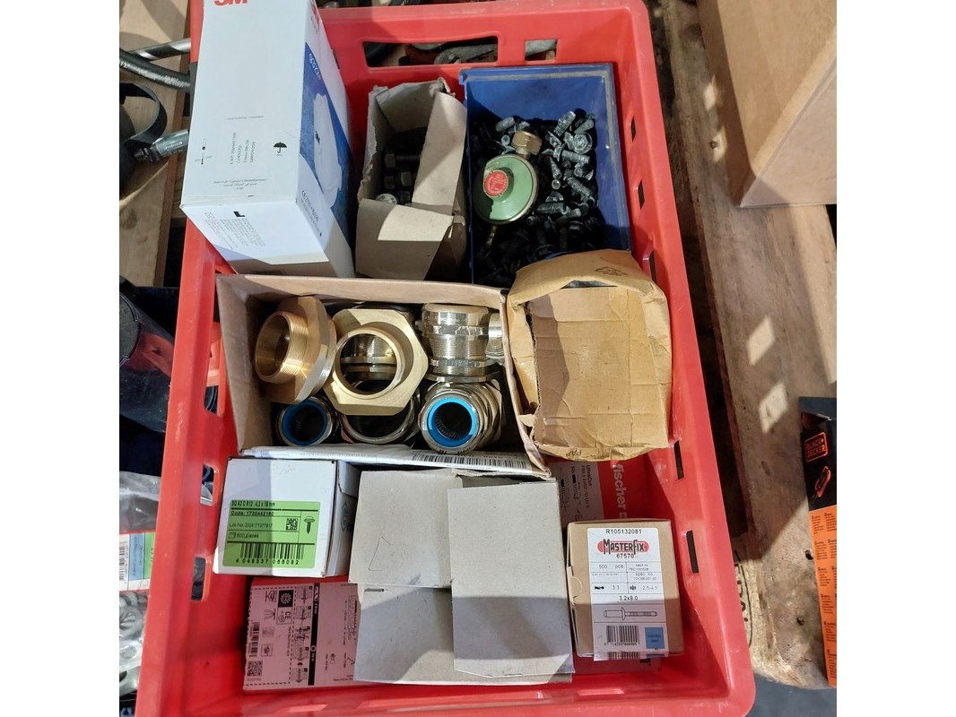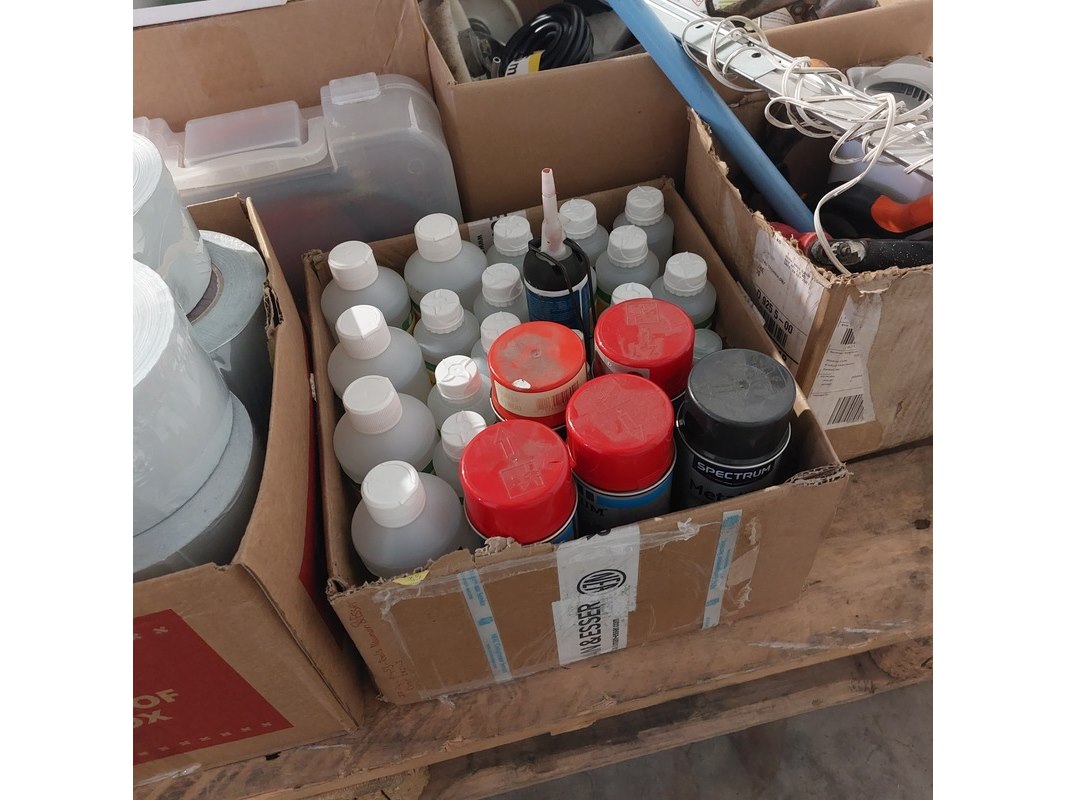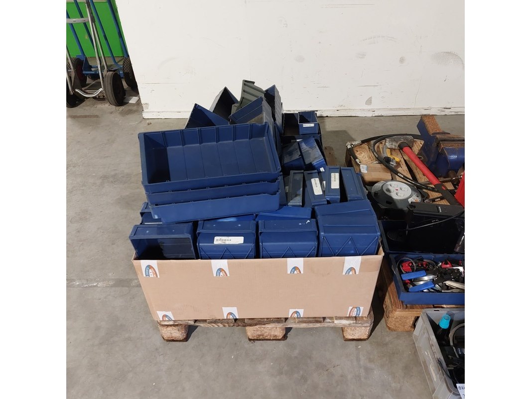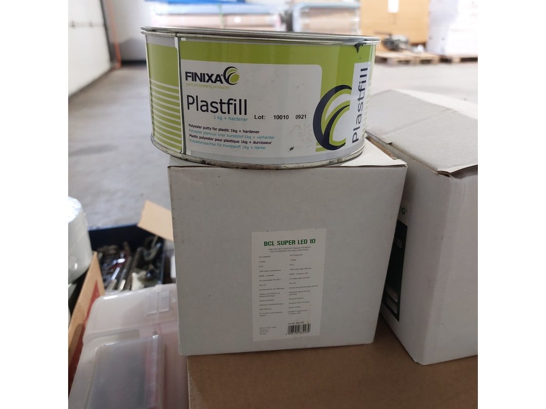 Product: Partij diversen Conditie: Gebruikt Specificaties: Bestaande uit o.a.: Diverse magazijn bakken, bankschroef, moker, divers handgereedschap, koffiezetapparaat, diverse vloeistoffen, divers ijzerwaar, batterij lader Black+Decker, mobiele Led-accu-werklamp, installatiemateriaal, etc.