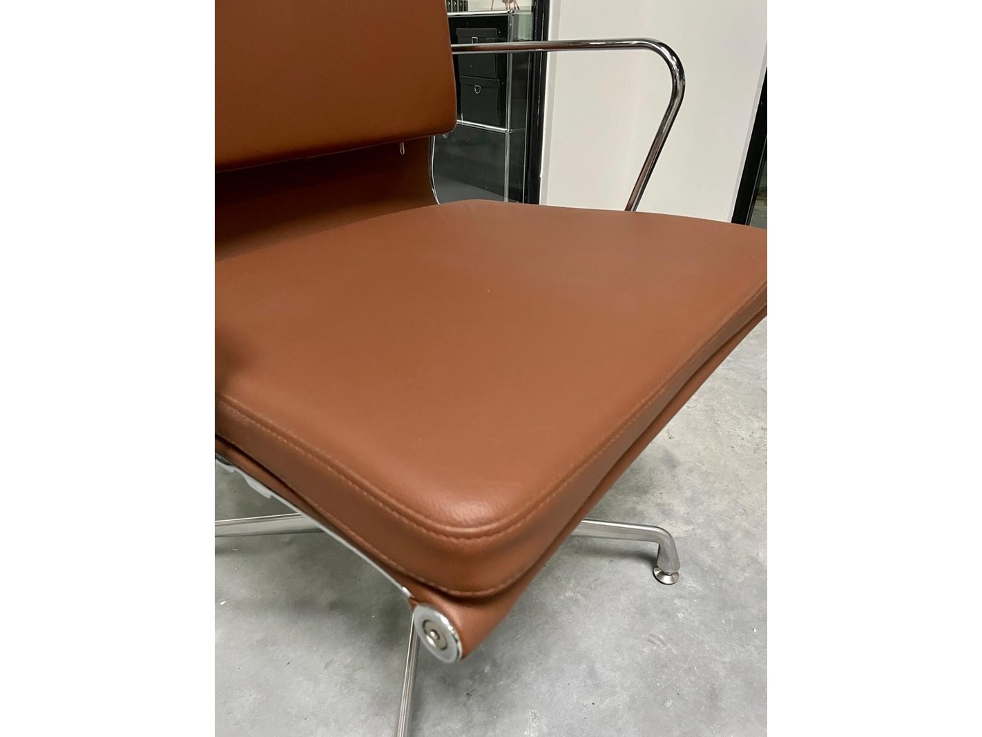 Eames ea208 softpad bureaustoel in cognac leer, replica, cognac / chroom