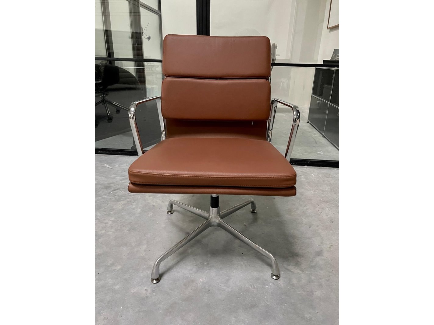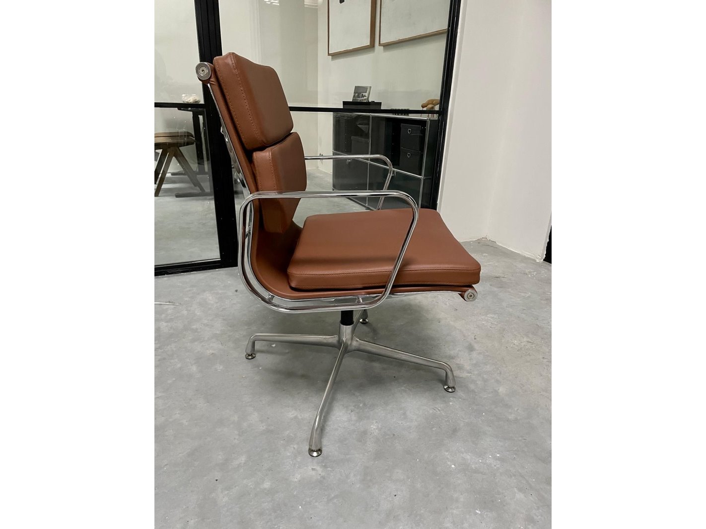 Eames ea208 softpad bureaustoel in cognac leer, replica, cognac / chroom