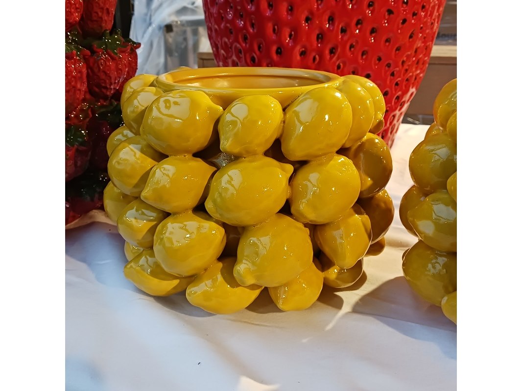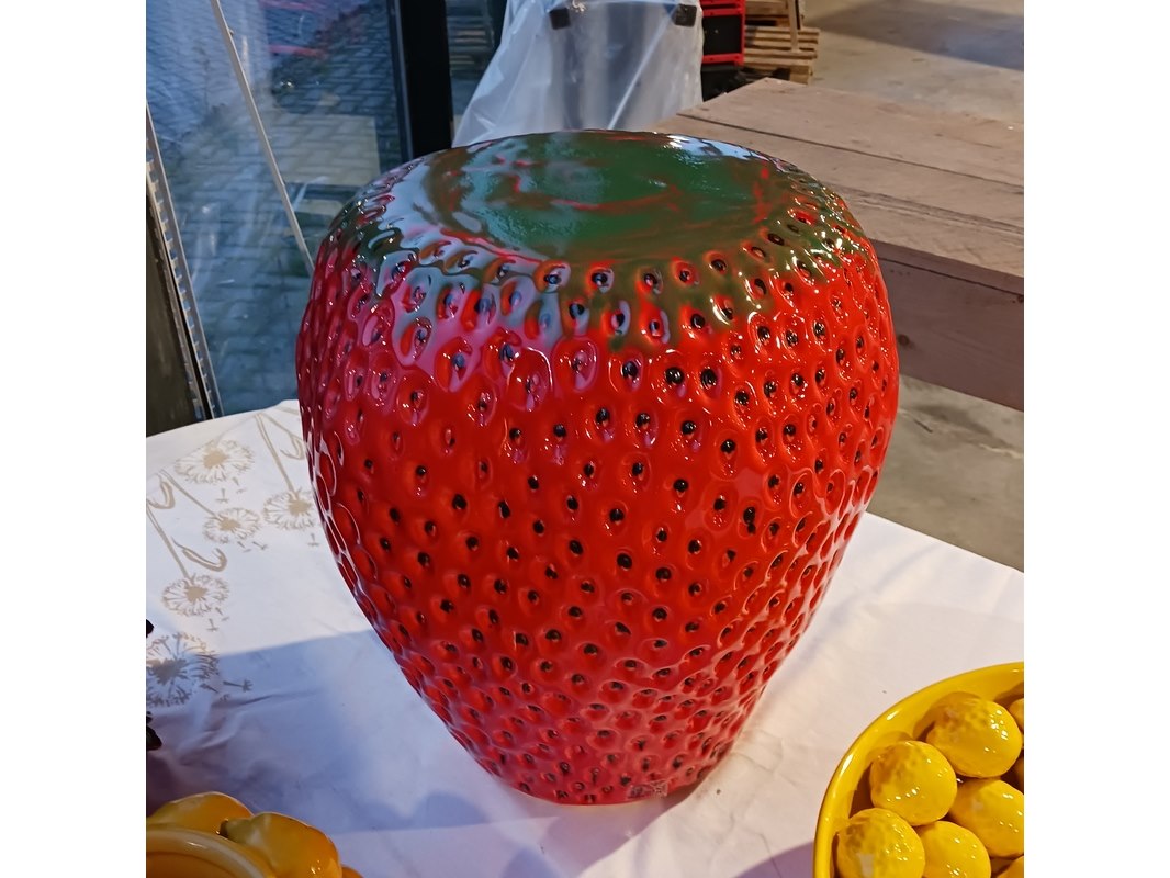 Merk: Des Pots en van Roon Product: Fruit decoratie Materiaal: keramiek Specificaties: 3x fruit vaas, citroen, hoogte ca. 20 cm 1x fruit vaas, aardbei, hoogte ca. 35 cm 1x fruit schaal, citroen, diameter x hoogte ca. 43x10 cm 1x fruit kruk, aardbei, hoogte ca. 44 cm