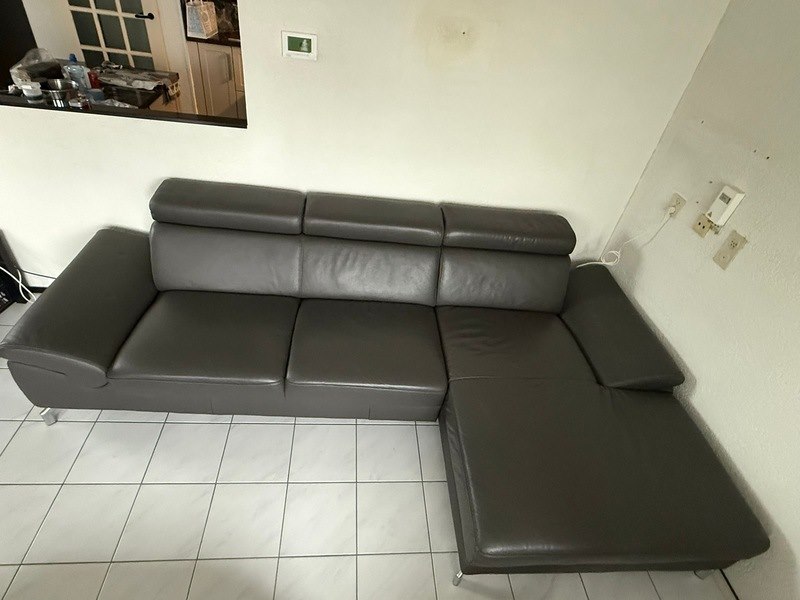 Merk: Montel Product: Leren Zit/ligbank Kleur: Donkergrijs / Antraciet Materiaal: Leer met metalen poten Conditie: Gebruikt Specificaties: