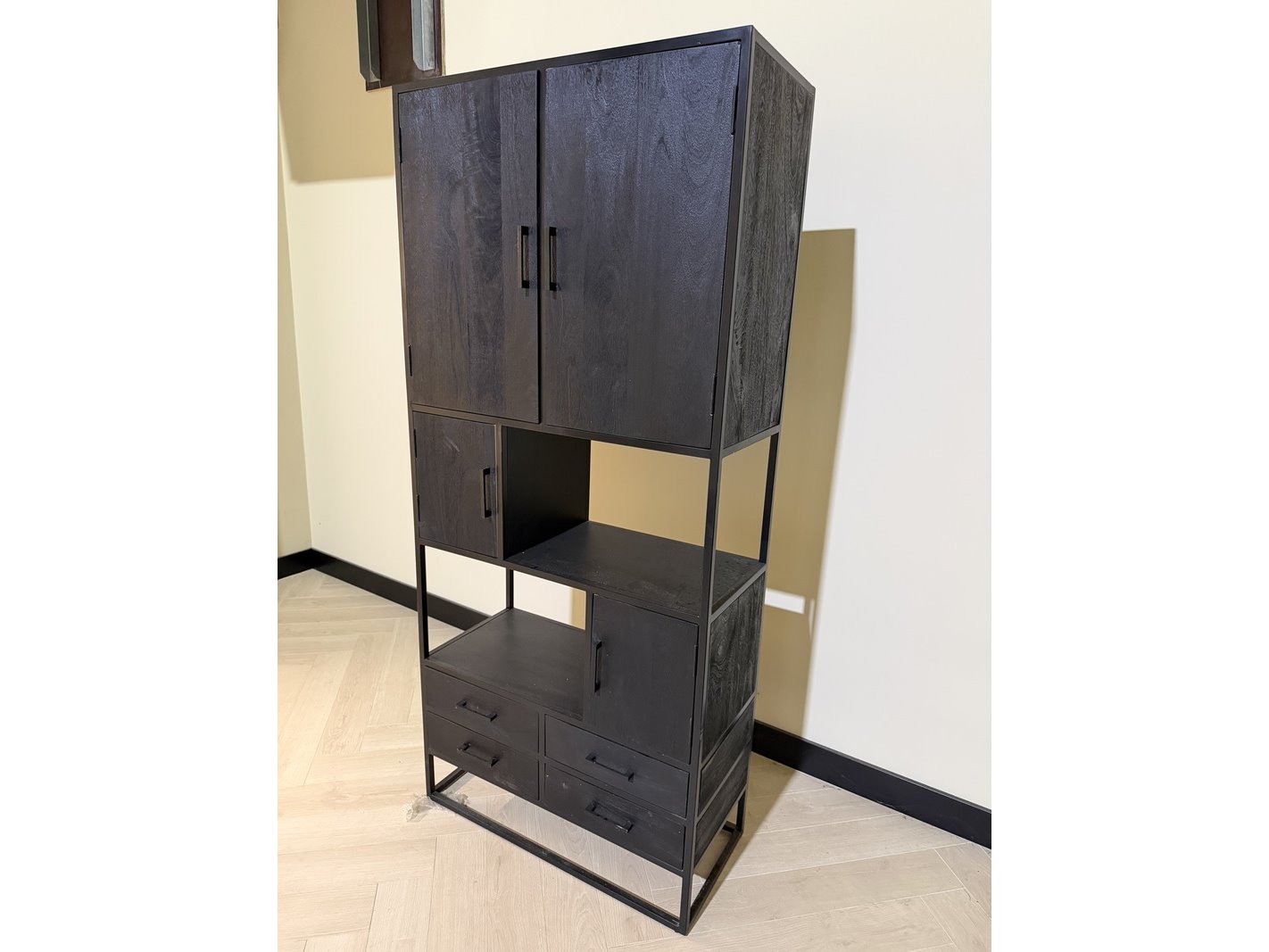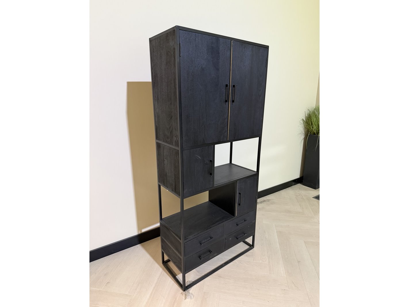 Merk: Richfield Product: Hoge Zwarte Kast Mangohout Kleur: Zwart Materiaal: Mango Afmeting: 200x100x76cm BouwJaar: 2025 Specificaties: Functionele en moderne hoge kast met een strak design, perfect voor in de woonkamer, hal of werkkamer. De kast biedt veel opbergruimte dankzij de combinatie van twee deuren en vier lades. Specificaties: Hoogte: 200 cm Breedte: 90 cm Diepte: 45 cm Indeling: 2 deuren & 4 lades De kast is praktisch ingedeeld en geschikt voor het opbergen van diverse spullen. Let op: de deuren en lades kunnen wat stroef sluiten, maar dit kan mogelijk eenvoudig verholpen worden met een kleine afstelling of onderhoud. Let op: Gebruikssporen mogelijk door eerder gebruik of showroomopstelling.