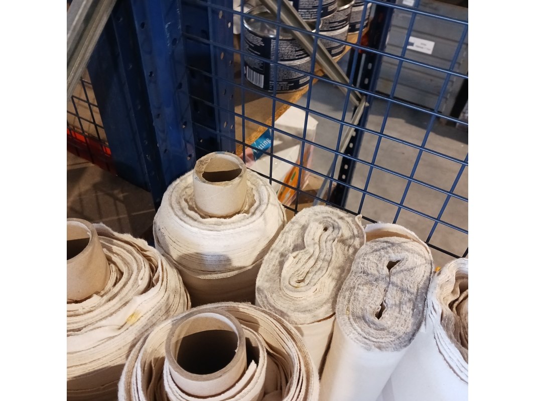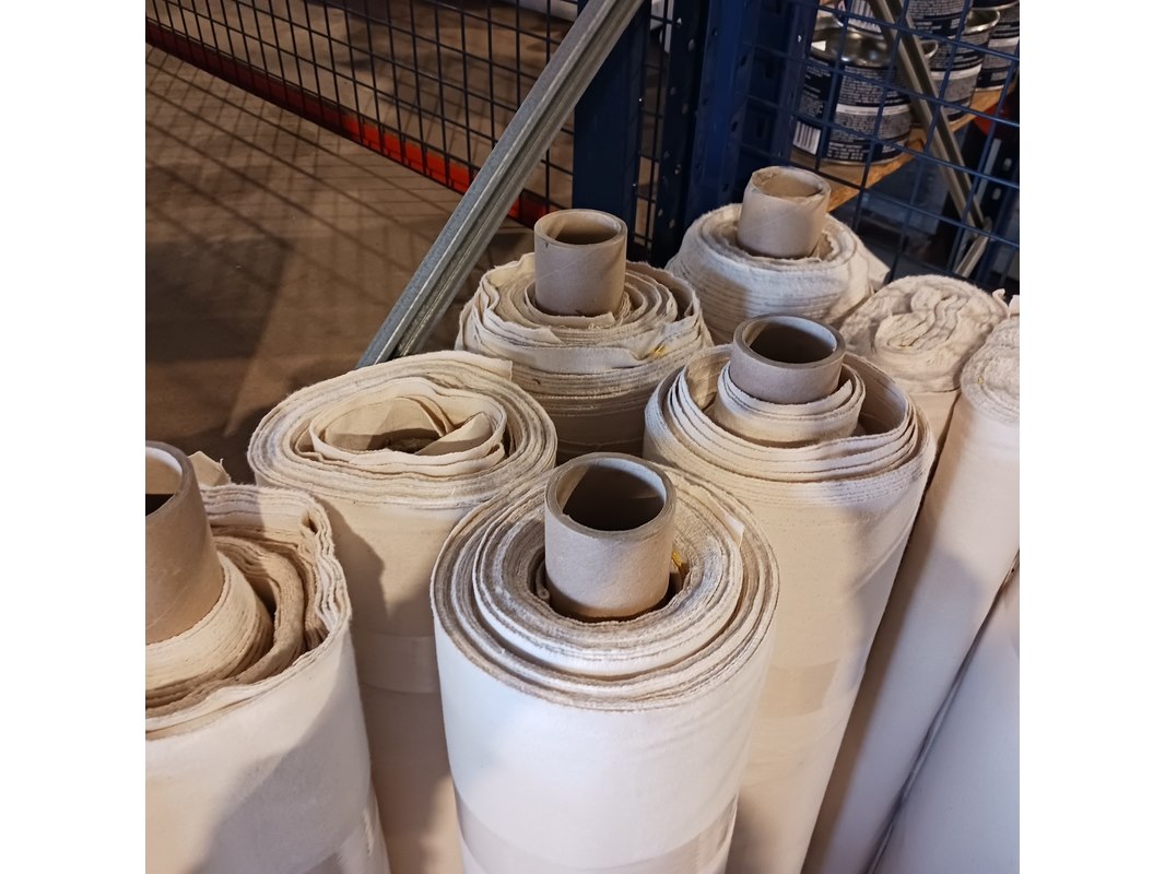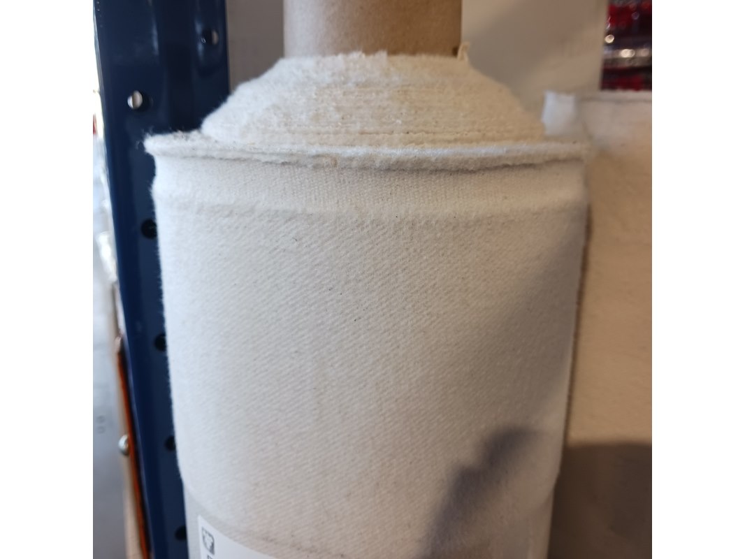 Product: Rol zware canvas bekledingsstof Specificaties: Katoen, ecru Breedte ca. 165 cm, totale hoeveelheid ca. 200 meter