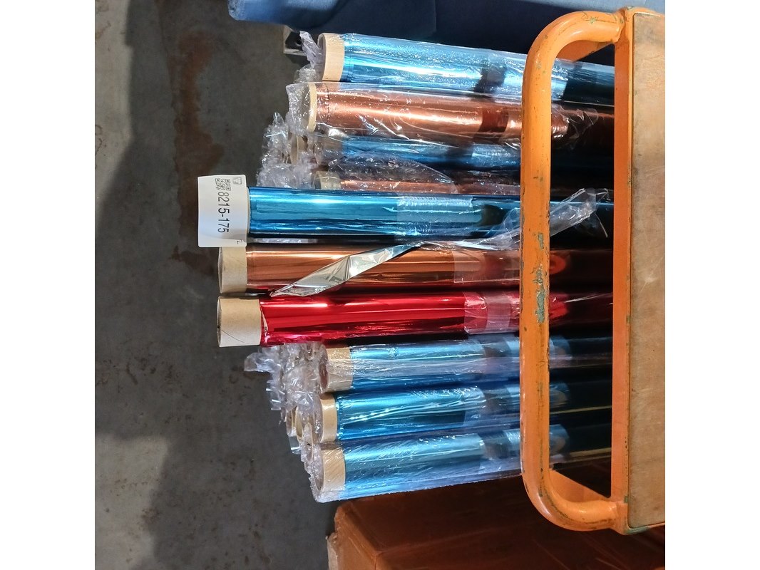 Product: Rol aluminiumfolie Specificaties: Geschikt voor decoratie en geschenkverpakkingen 40x rol rood 22x rol brons 55x rol blauw Rollengte 10 meter, totale hoeveelheid ca. 1170 meter