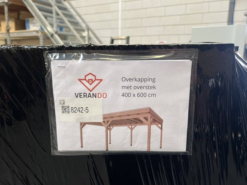 Merk: Verando Product: Douglas overkapping met overstek Materiaal: Douglas hout Afmeting: 400*600cm Conditie: nieuw Specificaties: Deze overkapping bestaat uit hoogwaardige, bezaagde, Europese, Douglas houten onderdelen en wordt geleverd als een compleet pakket inclusief bevestigingsmaterialen en een duidelijke, stapsgewijze handleiding voor de montage. Specificaties: •Palen van 12 × 12 cm •Ringbalk van 5 × 15 cm (bij 400 cm diepte 7,5 x 17,5 cm) •Balklaag van 5 x 15 cm •Dakbeschot van 1,8 cm •Boeiboorden van 2,5 × 20 cm •Schoren van 5 × 15 cm •Bezaagd Europees Douglas hout •Inclusief alle benodigde bevestigingsmaterialen •Heldere en gebruiksvriendelijke montagehandleiding