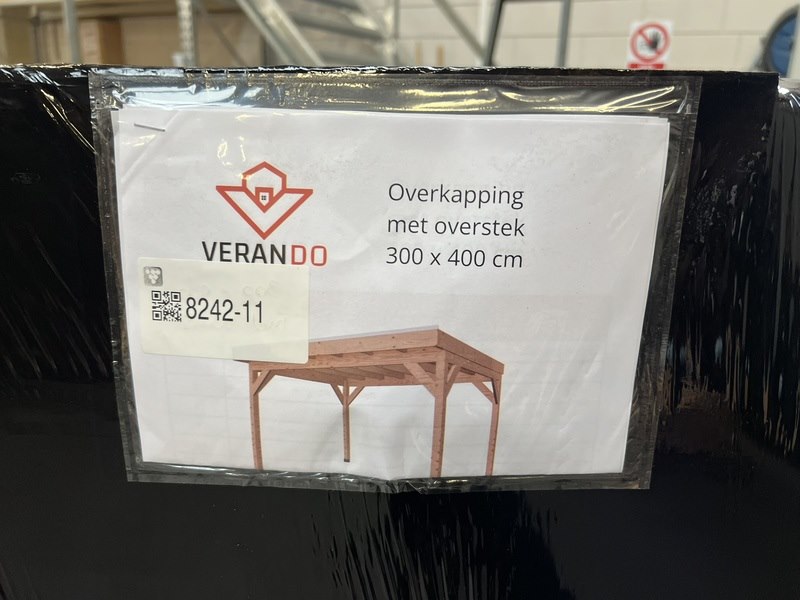 Merk: Verando Product: Douglas overkapping met overstek Materiaal: Douglas hout Afmeting: 300*400cm Conditie: nieuw Specificaties: Deze overkapping bestaat uit hoogwaardige, bezaagde, Europese, Douglas houten onderdelen en wordt geleverd als een compleet pakket inclusief bevestigingsmaterialen en een duidelijke, stapsgewijze handleiding voor de montage. Specificaties: •Palen van 12 × 12 cm •Ringbalk van 5 × 15 cm (bij 400 cm diepte 7,5 x 17,5 cm) •Balklaag van 5 x 15 cm •Dakbeschot van 1,8 cm •Boeiboorden van 2,5 × 20 cm •Schoren van 5 × 15 cm •Bezaagd Europees Douglas hout •Inclusief alle benodigde bevestigingsmaterialen •Heldere en gebruiksvriendelijke montagehandleiding