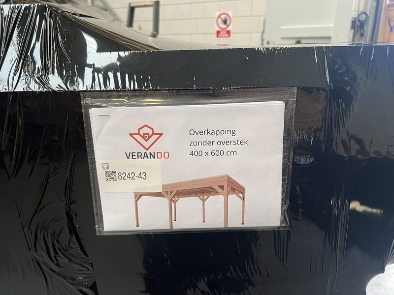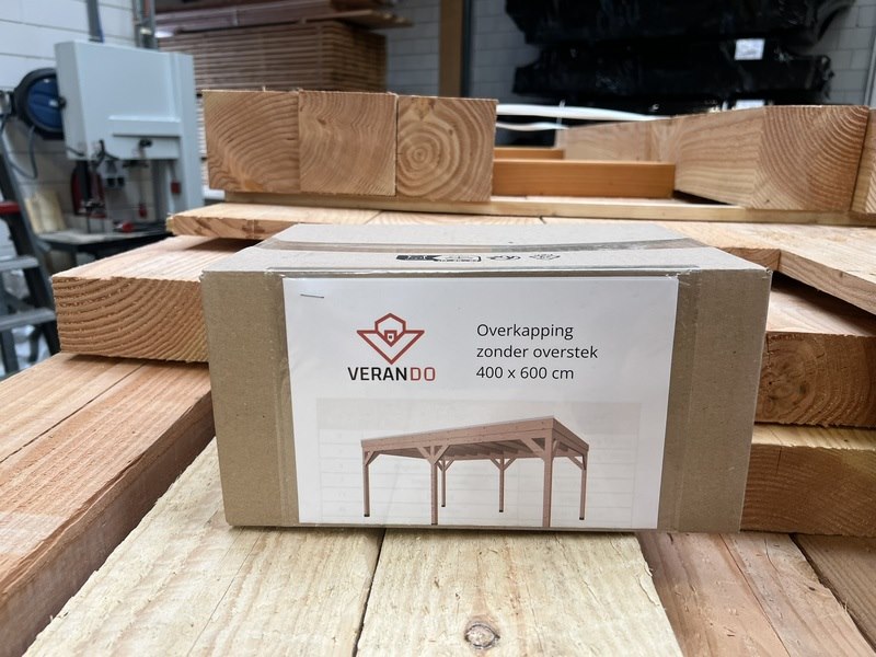 Merk: Verando Product: Douglas overkapping Materiaal: Douglas hout Afmeting: 400*600cm Conditie: nieuw Specificaties: Deze overkapping bestaat uit hoogwaardige, bezaagde, Europese, Douglas houten onderdelen en wordt geleverd als een compleet pakket inclusief bevestigingsmaterialen en een duidelijke, stapsgewijze handleiding voor de montage. Specificaties: •Palen van 12 × 12 cm •Ringbalk van 5 × 15 cm (bij 400 cm diepte 7,5 x 17,5 cm) •Balklaag van 5 x 15 cm •Dakbeschot van 1,8 cm •Boeiboorden van 2,5 × 20 cm •Schoren van 5 × 15 cm •Bezaagd Europees Douglas hout •Inclusief alle benodigde bevestigingsmaterialen •Heldere en gebruiksvriendelijke montagehandleiding