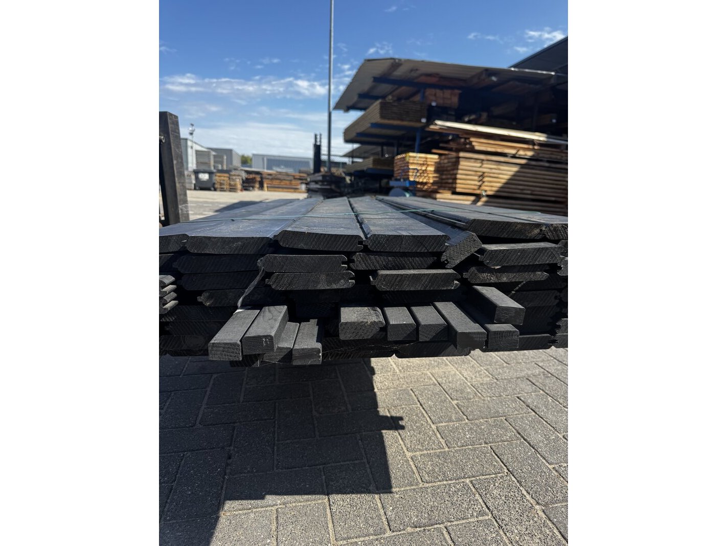 47 stuks plus een aantal afwerklatten blokhut profiel | zwart gespoten , 2,8 x 14 x 178 cm - werkende breedte 13 cm