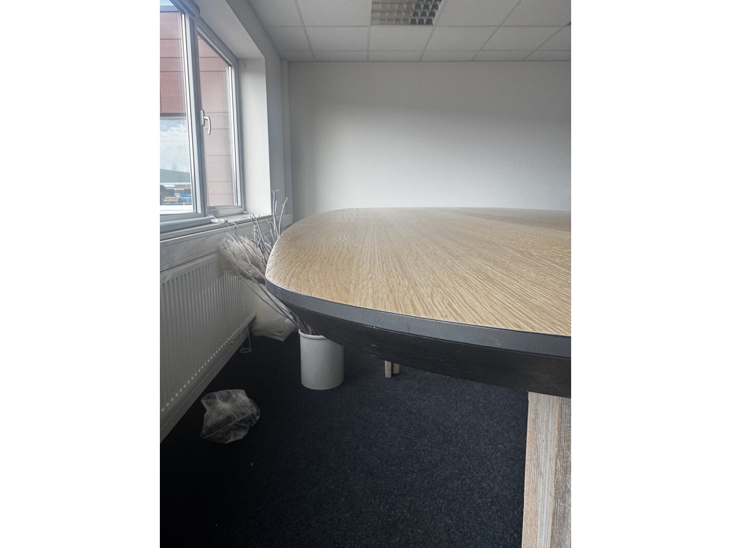 Product: Deens ovaal tafelblad eiken Materiaal: hout Afmeting: 220x100 cm Specificaties: Mooi Deens ovaal tafelblad in eiken met schuin afgesneden facet rand in het zwart. He tafelblad is behandeld met een professionele mat transparante lak tegen vlekken. Het tafelblad is een showroommodel en wordt aangeboden zonder onderstel.
